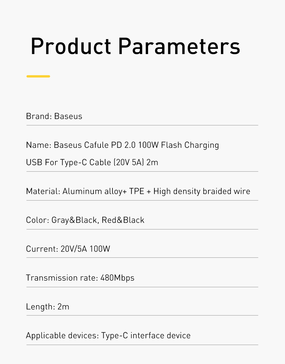 كيبل Baseus cafule series type-C PD2.0
