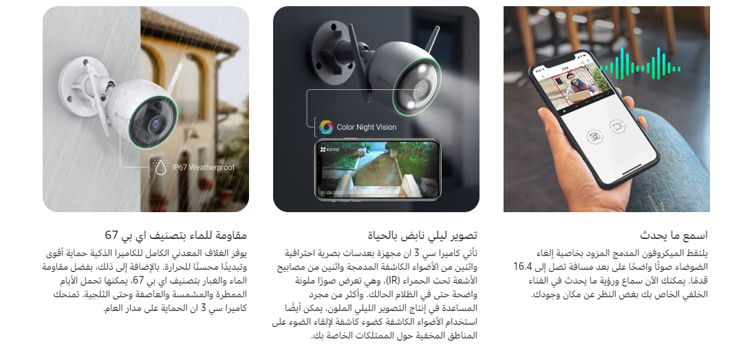 كاميرا واي فاي الذكية EZVIZ C3N للاستخدام الخارجي - رؤية ليلية للألوان