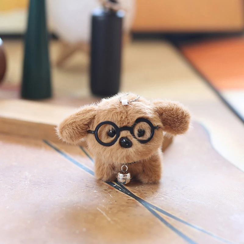 - 1 قطعة Kawaii لطيف نظارات جرو أفخم المفاتيح جميل ألعاب كرتونية قلادة لطيف الحيوانات الناعمة كيرينغ حقيبة معلقة