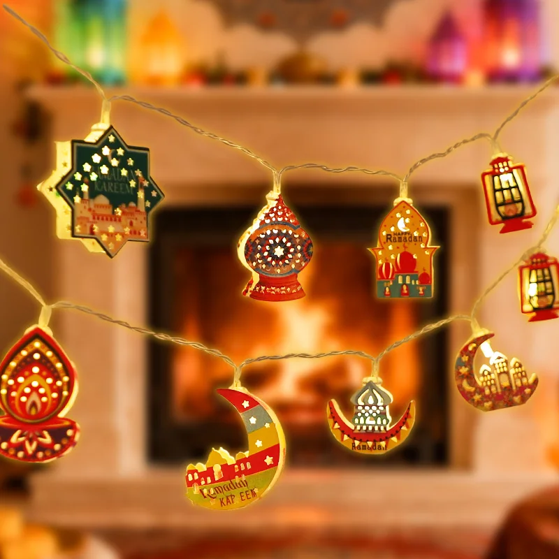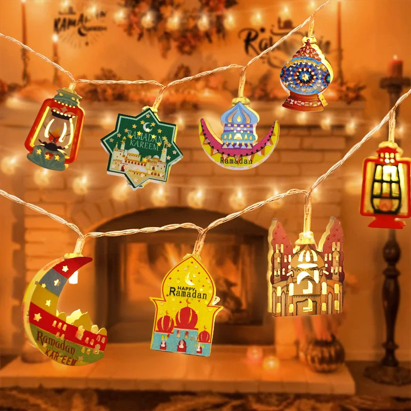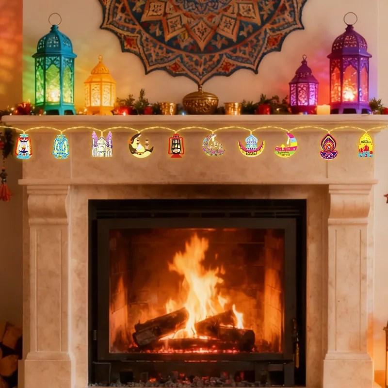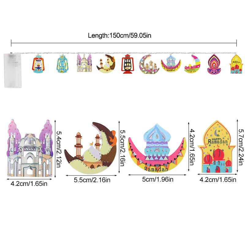 رمضان عيد مبارك LED سلسلة أضواء بطارية تعمل القمر ستار القلعة مصباح الإسلام مسلم مهرجان ديكور المنزل 2026