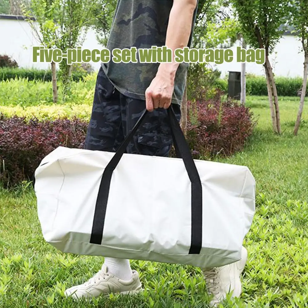 4. تحسين المتانة: مصنوعة من مادة متينة عالية الكثافة مصممة لتدوم مع إطار معدني مقاوم للصدأ مقترن بنسيج أكسفورد مقاوم للماء مما يسمح بتنظيف الأوساخ أو البقع بسرعة وسهولة في الهواء الطلق