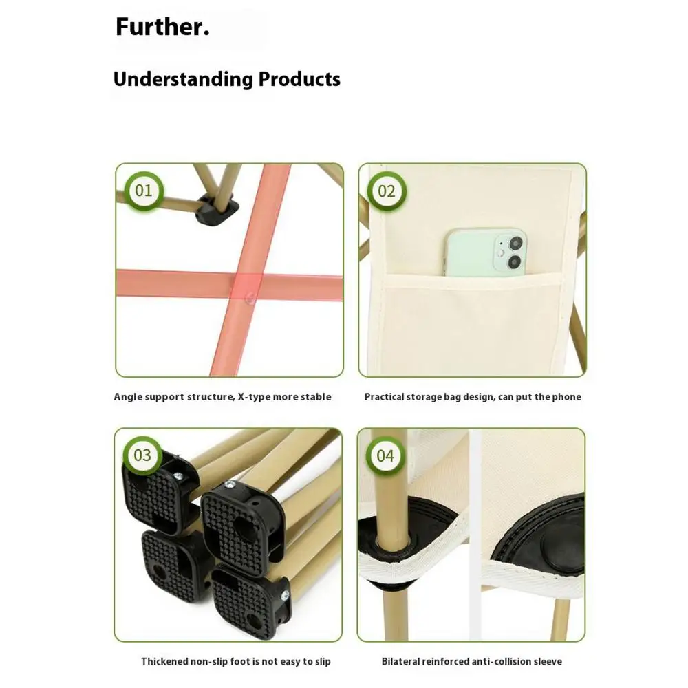 2. ثبات مضاد للانزلاق: مصمم بهيكل محمل ثابت وأرجل مضادة للانزلاق، تضمن كراسي التخييم وضعًا آمنًا على الأسطح غير المستوية مع تعزيز السلامة في الهواء الطلق