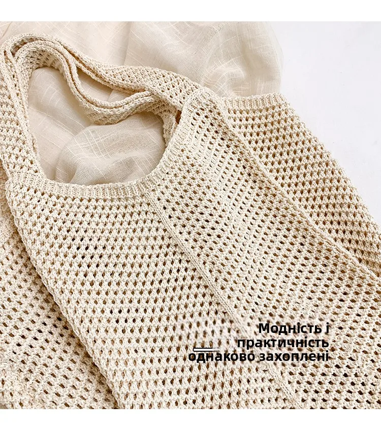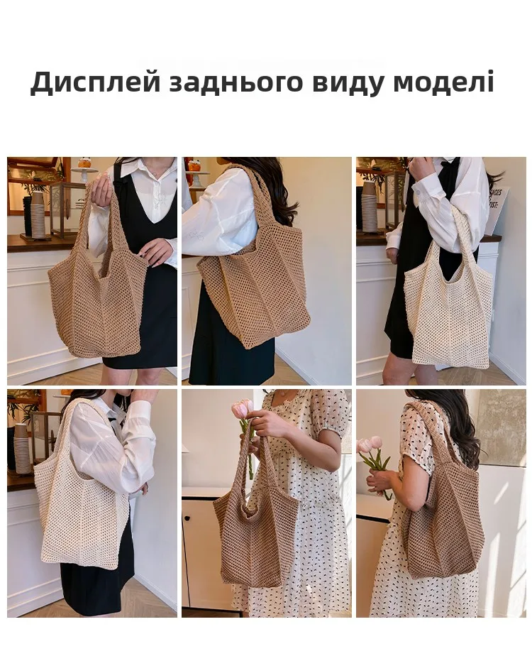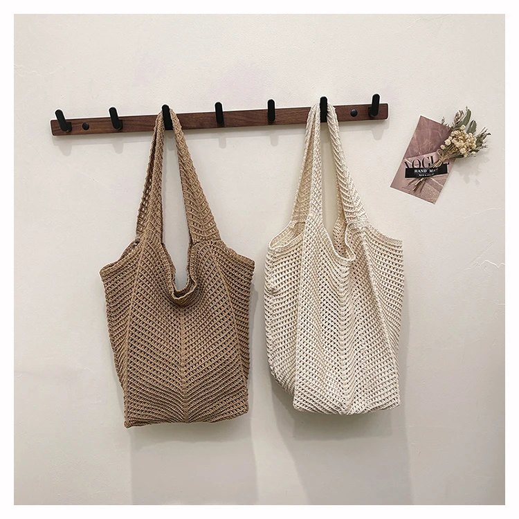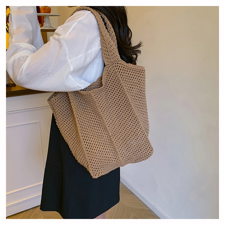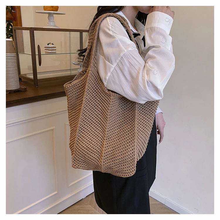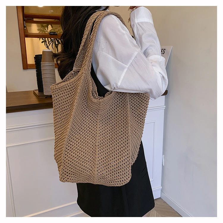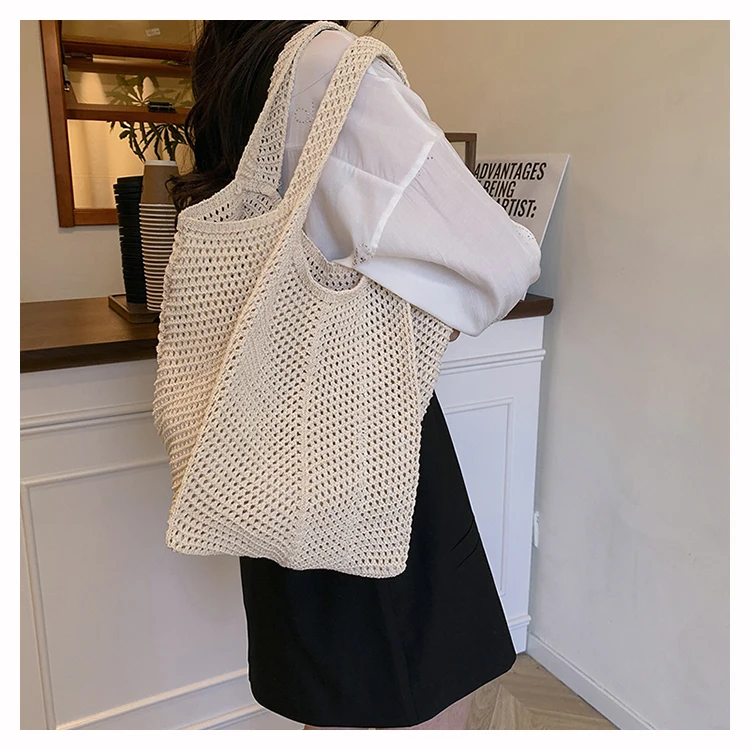 - حقيبة شاطئية عصرية مطرزة يدويًا بتصميم ريترو، حقيبة كتف واحدة من القماش الناعم بدون إغلاق، مقاس متوسط للشباب.