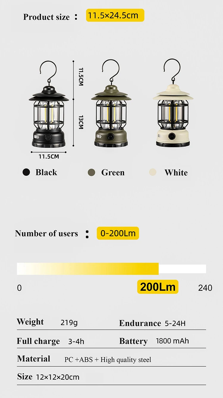 TXZ فانوس بارون القابل لإعادة الشحن لإضاءة التخييم، إضاءة بيئية خارجية، مصباح خيمة متين للسفر والنزهات فانوس متنقل قابل لإعادة الشحن، مثالي للتخييم والرحلات والنزهات. إضاءة خارجية متينة وطويلة الأمد، بيئية وموفرة
