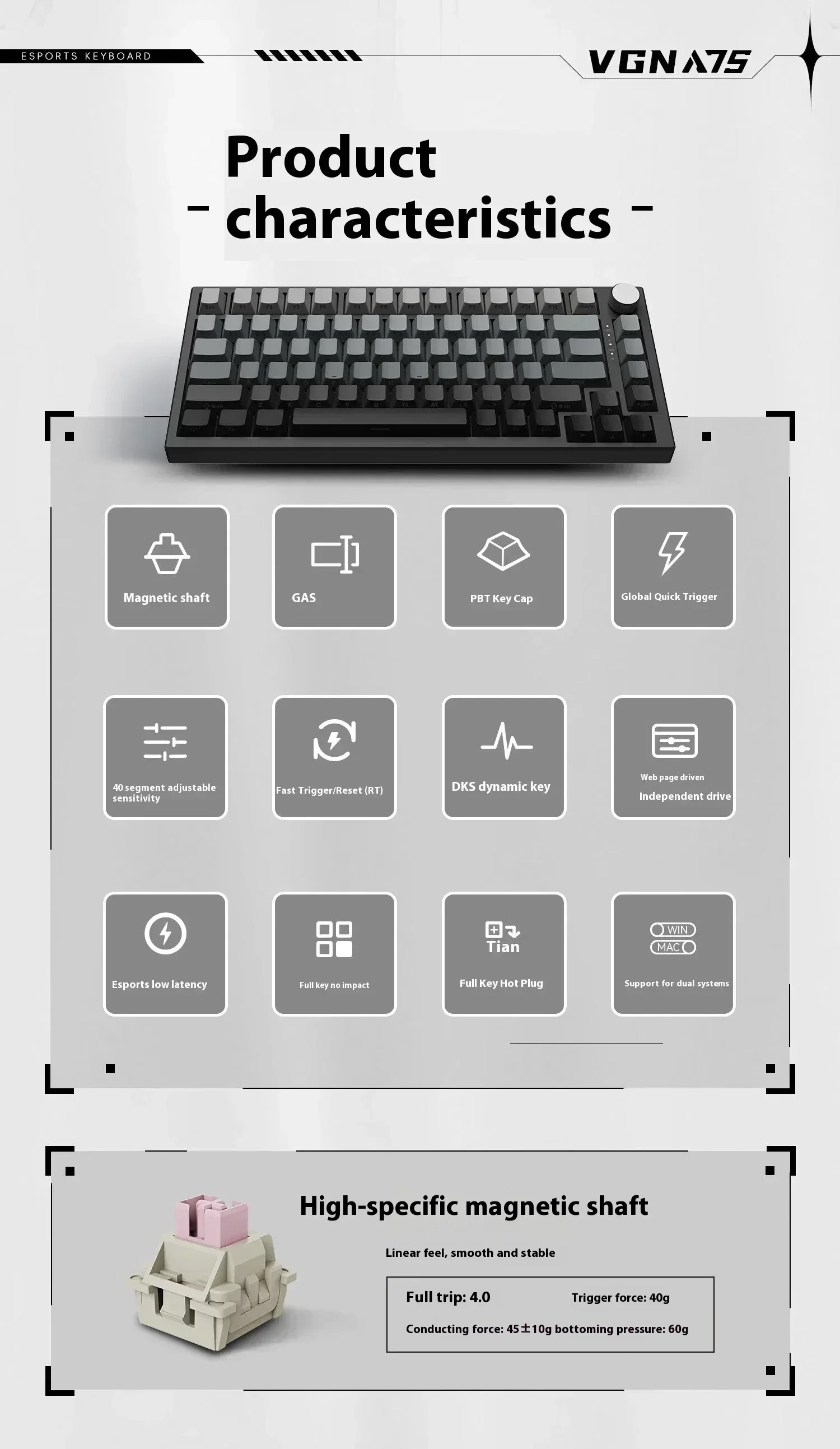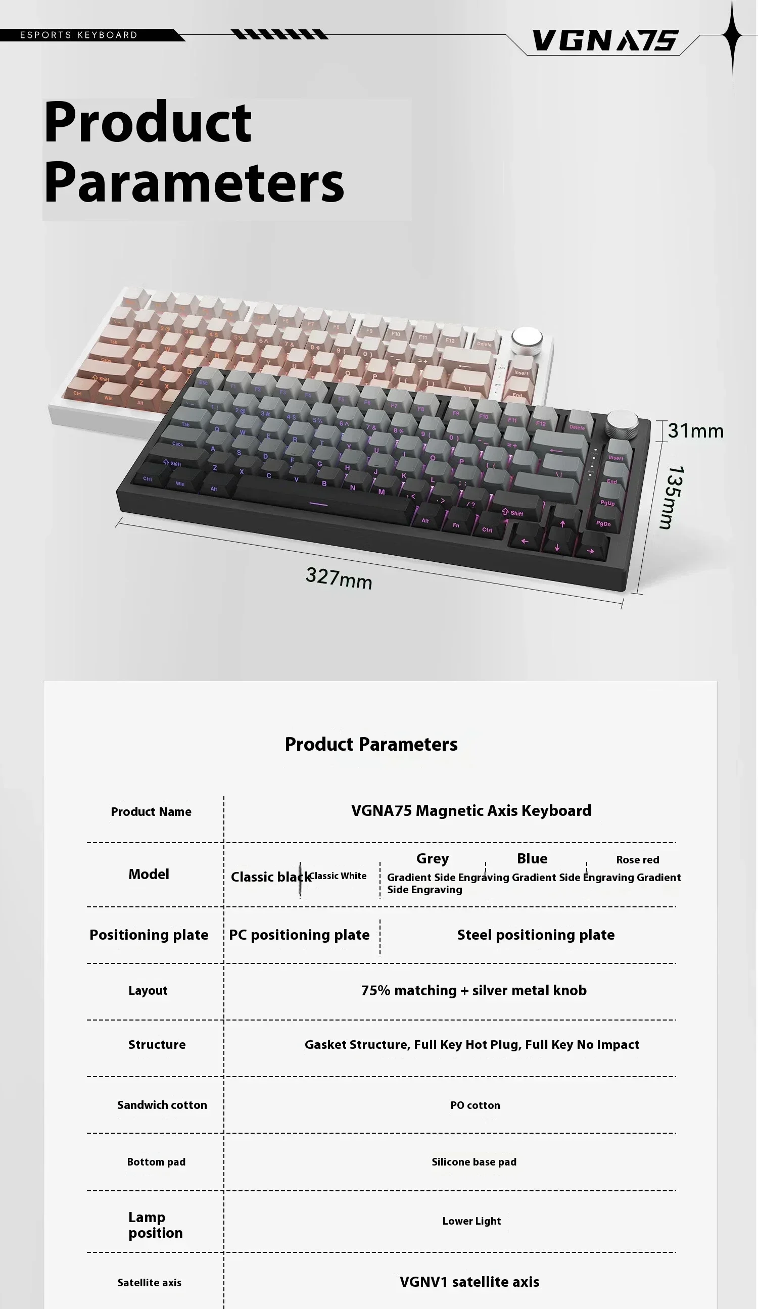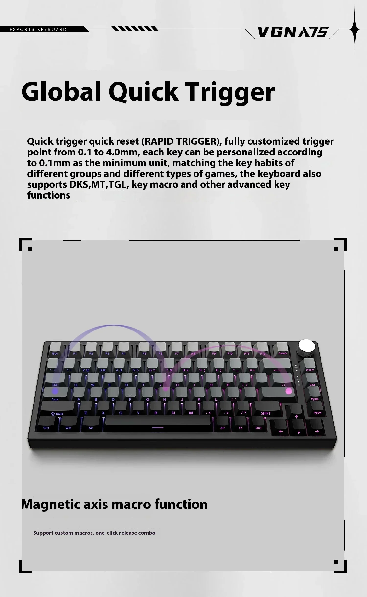 VGN الأصلي A75 المحور المغناطيسي لوحة المفاتيح الميكانيكية السلكية وحدة واحدة اتصال مخصص الألعاب FPS الألعاب RT مبادلة ساخنة