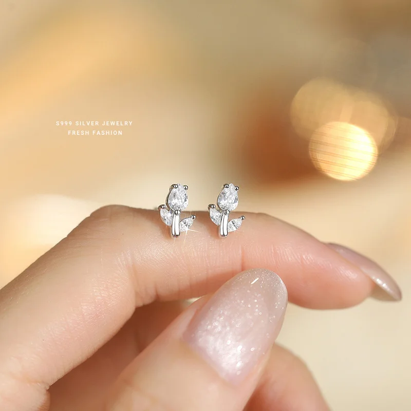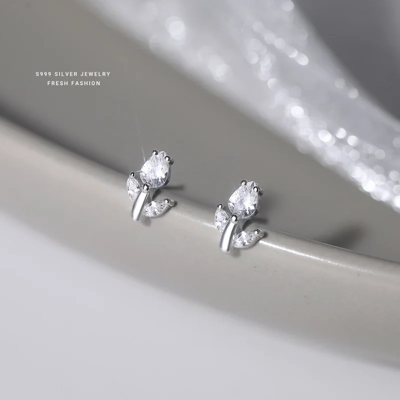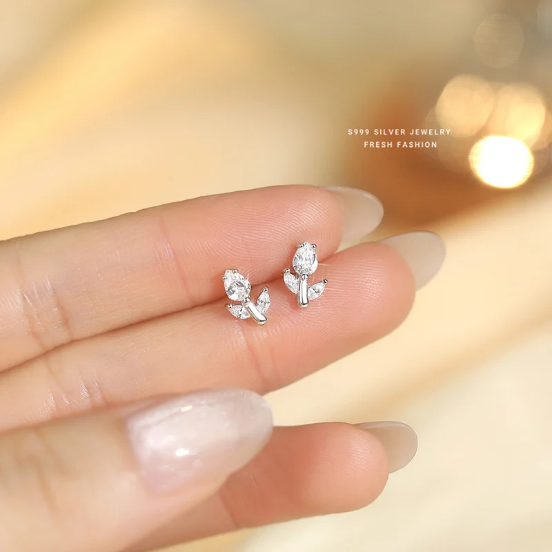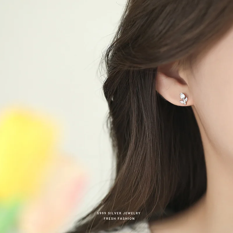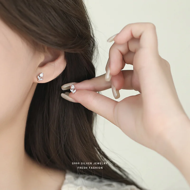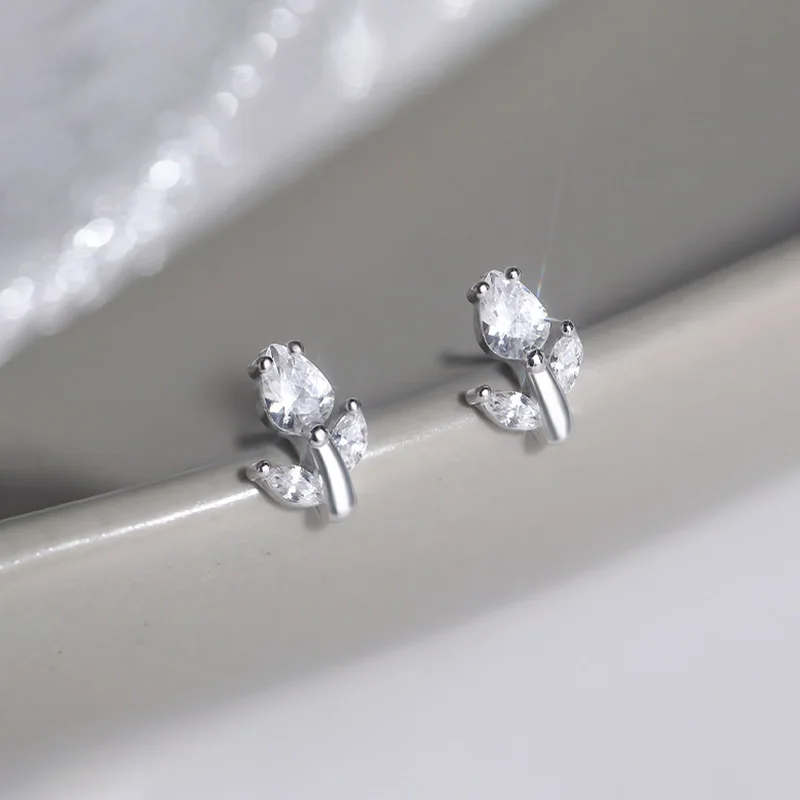 INZATT Real 925 فضة تألق الزركون زهرة أقراط صغيرة للنساء لطيف غرامة مجوهرات اكسسوارات رائعة