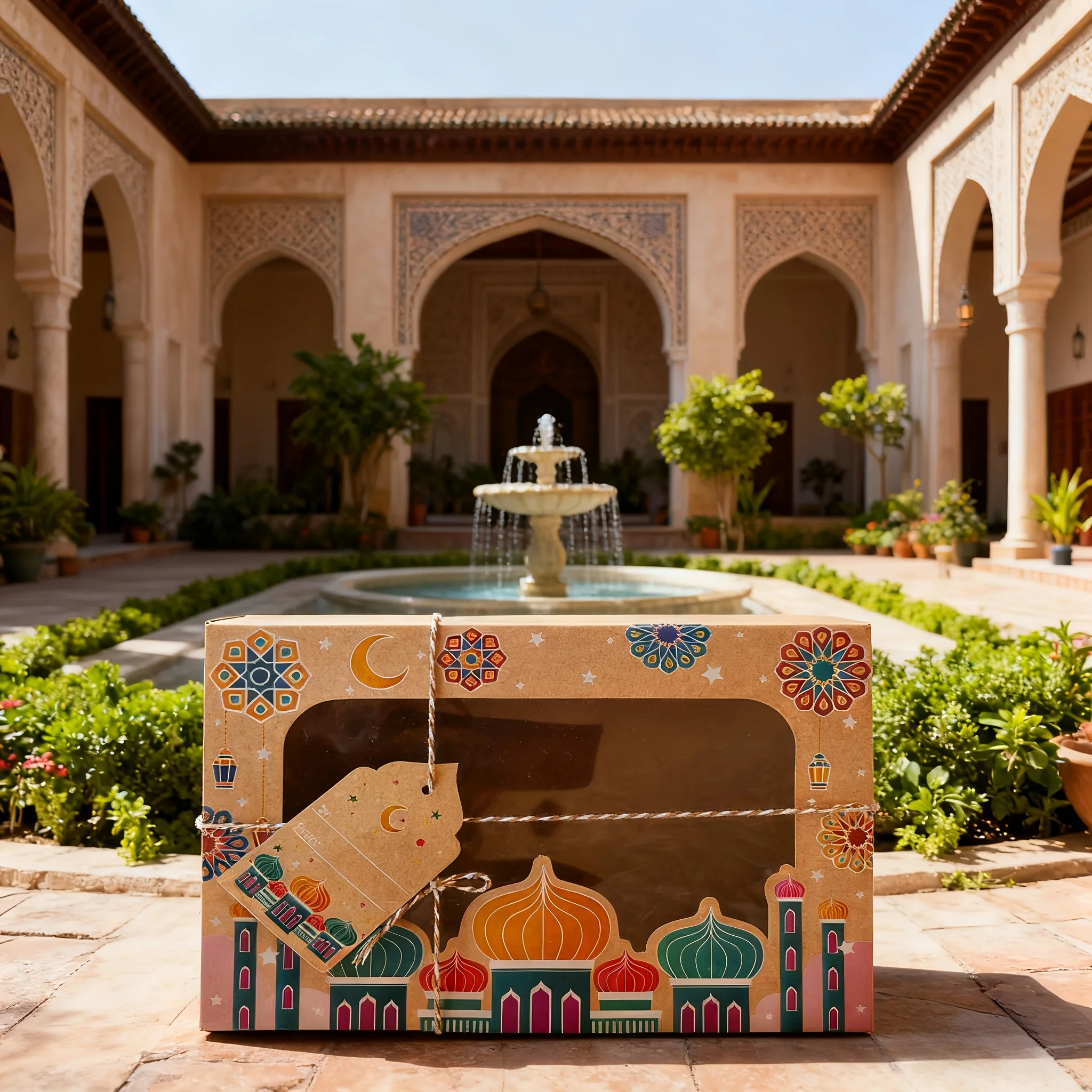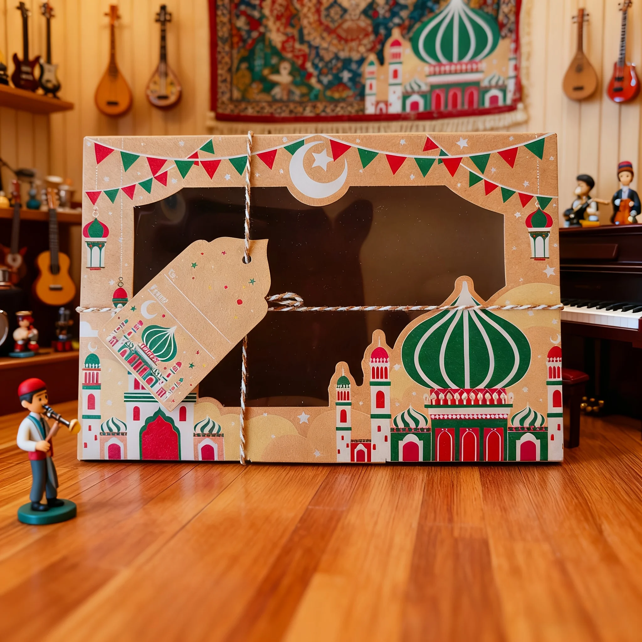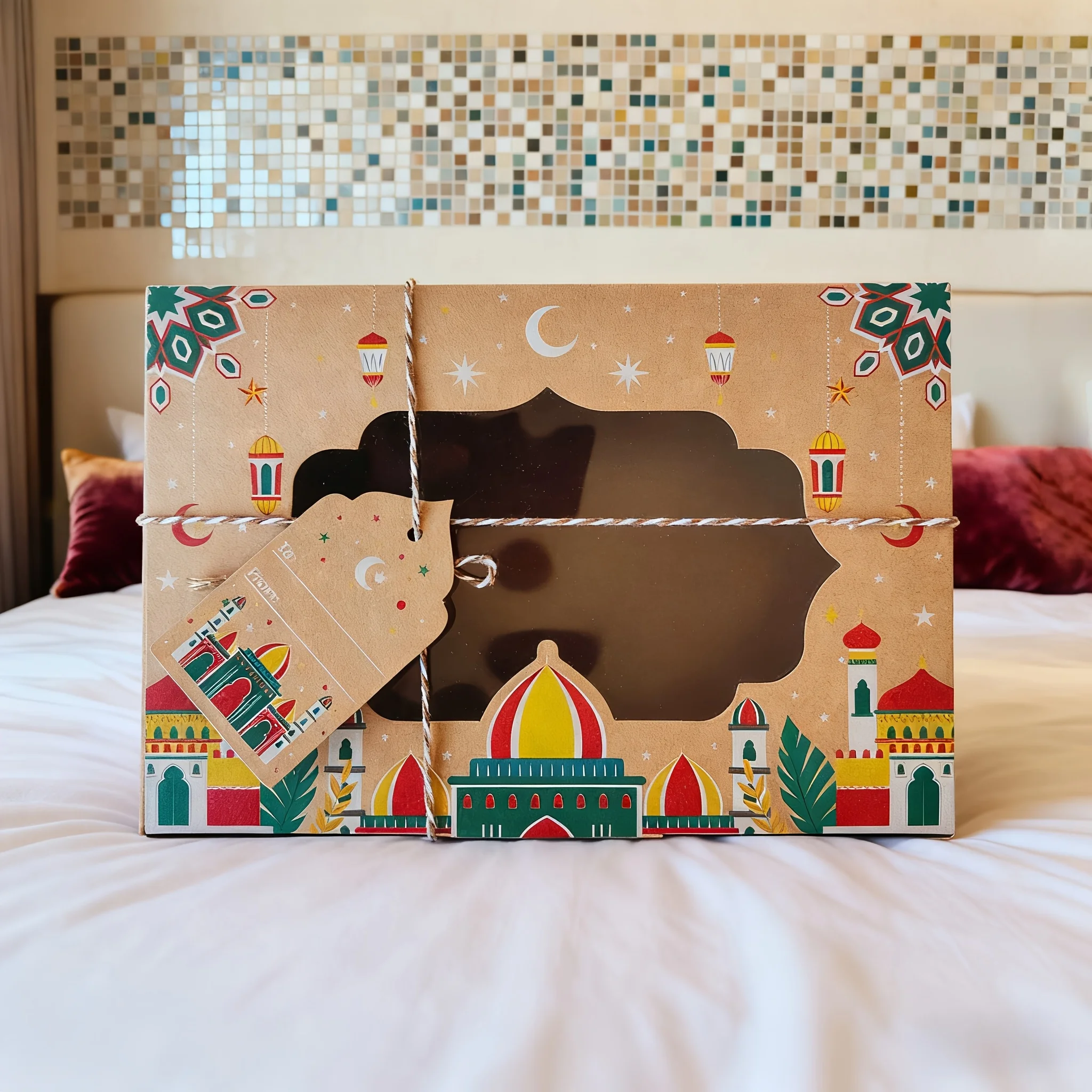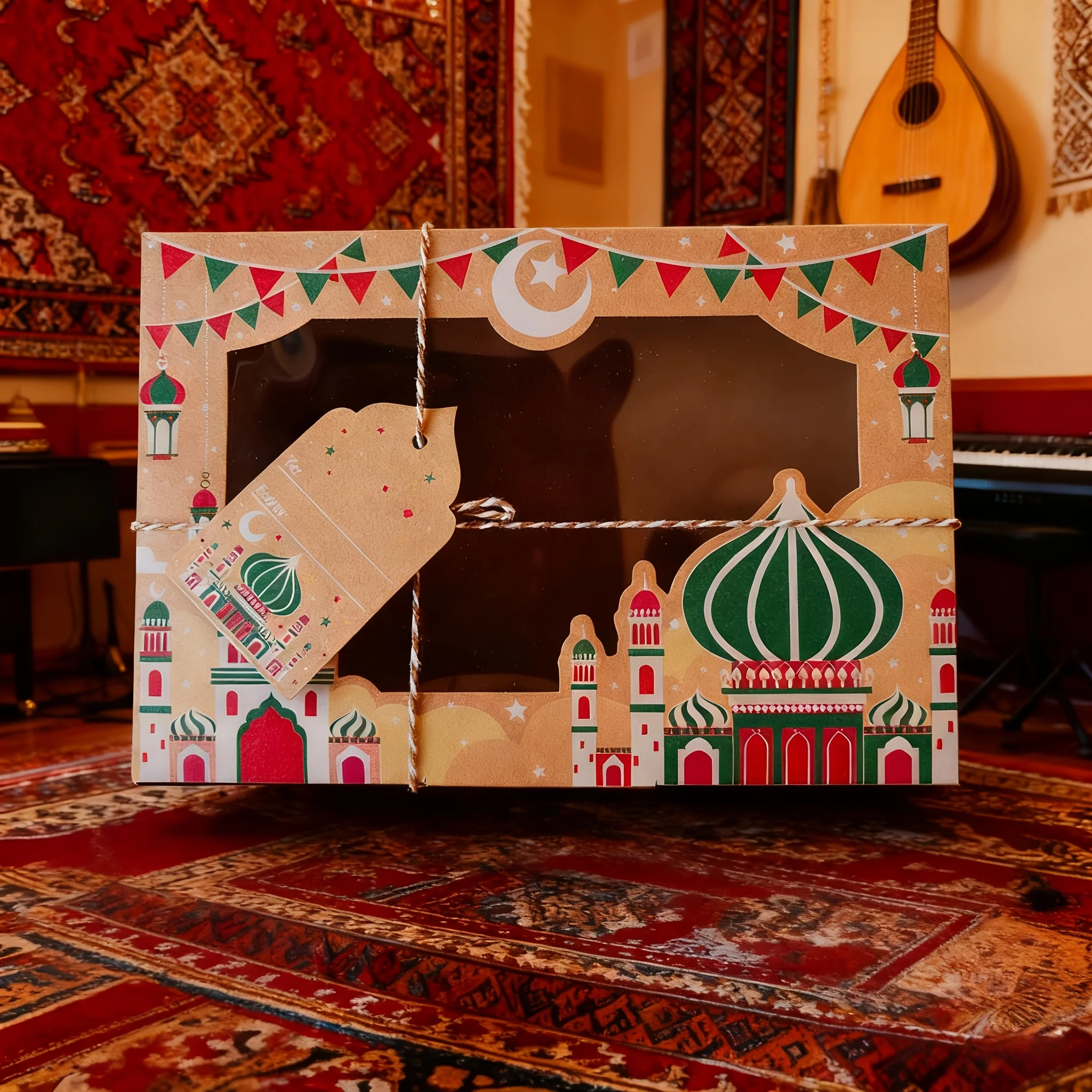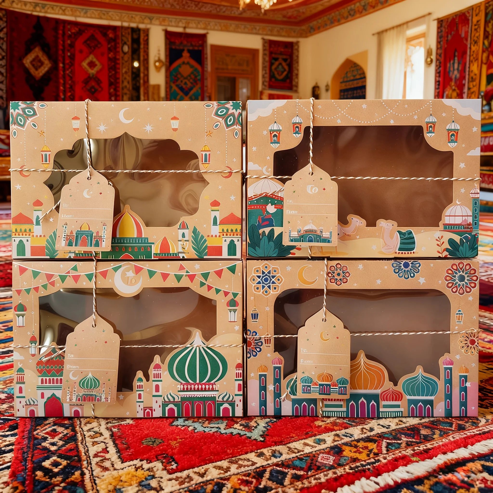 12/24 قطعة عيد مبارك خمر نافذة كرافت صندوق ورقي مع علامات هدية رمضان مبارك كاندي صندوق أكياس عيد صناديق التعبئة والتغليف الطرف