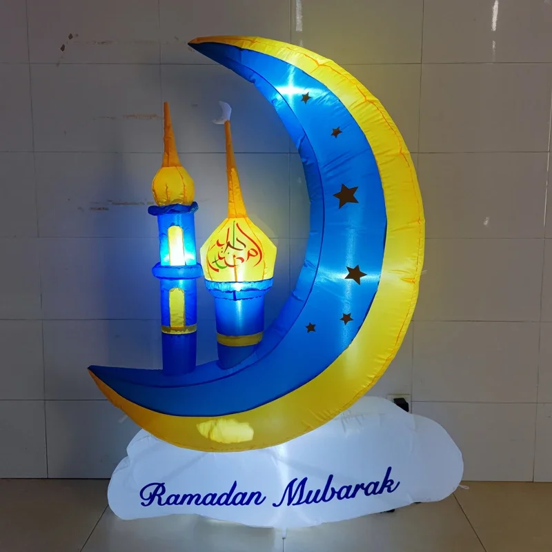 ديكور رمضان القمر المطاطية عيد مبارك ديكور ألعاب إسلامية قابلة للنفخ مع أضواء LED حفلة مقهى الحديقة الداخلية والخارجية