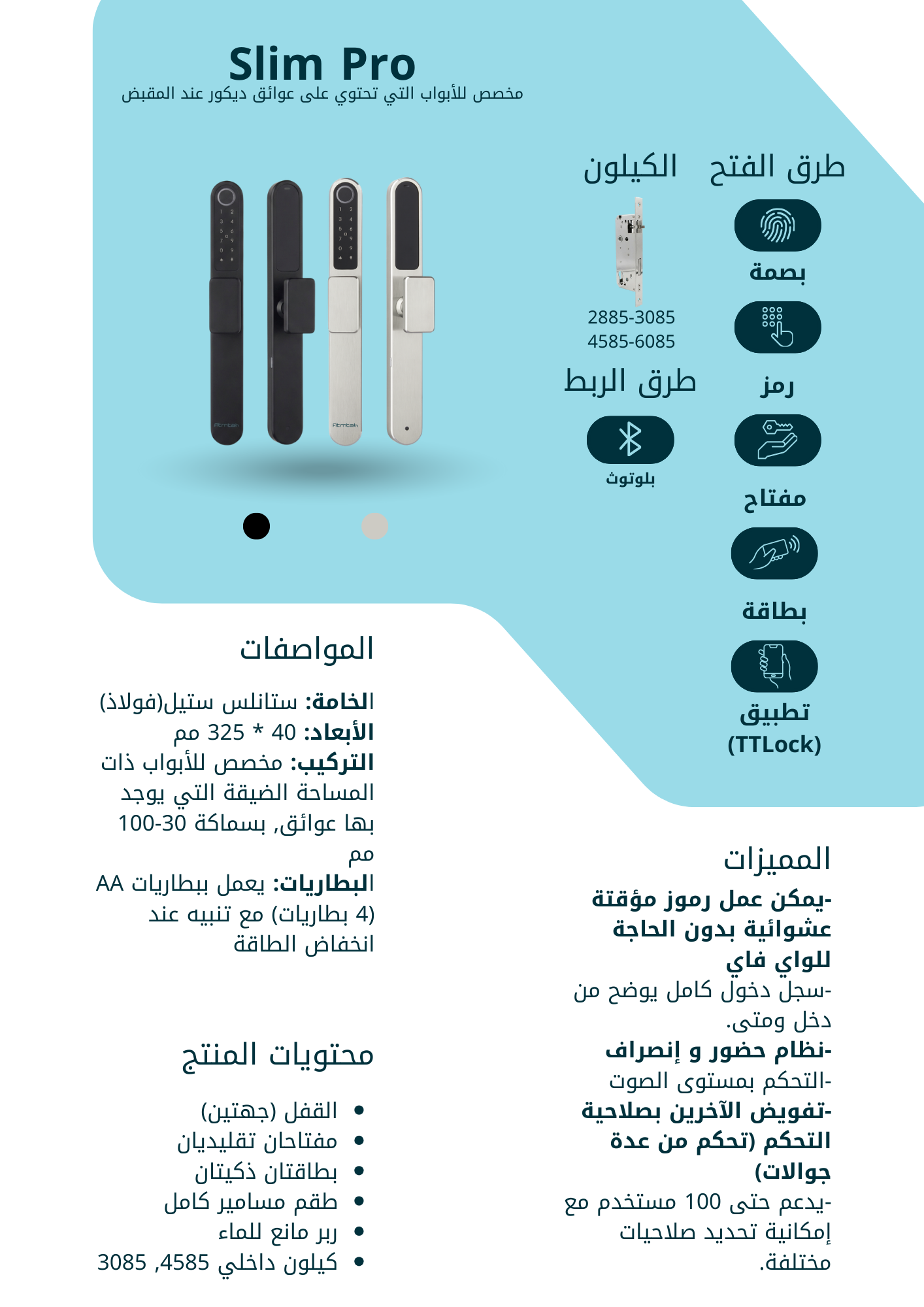 قفل ذكي يعطيك تحكّم كامل ببابك ببصمة، رقم سري، أو من الجوال. سهل، آمن، وعملي للاستخدام اليومي.