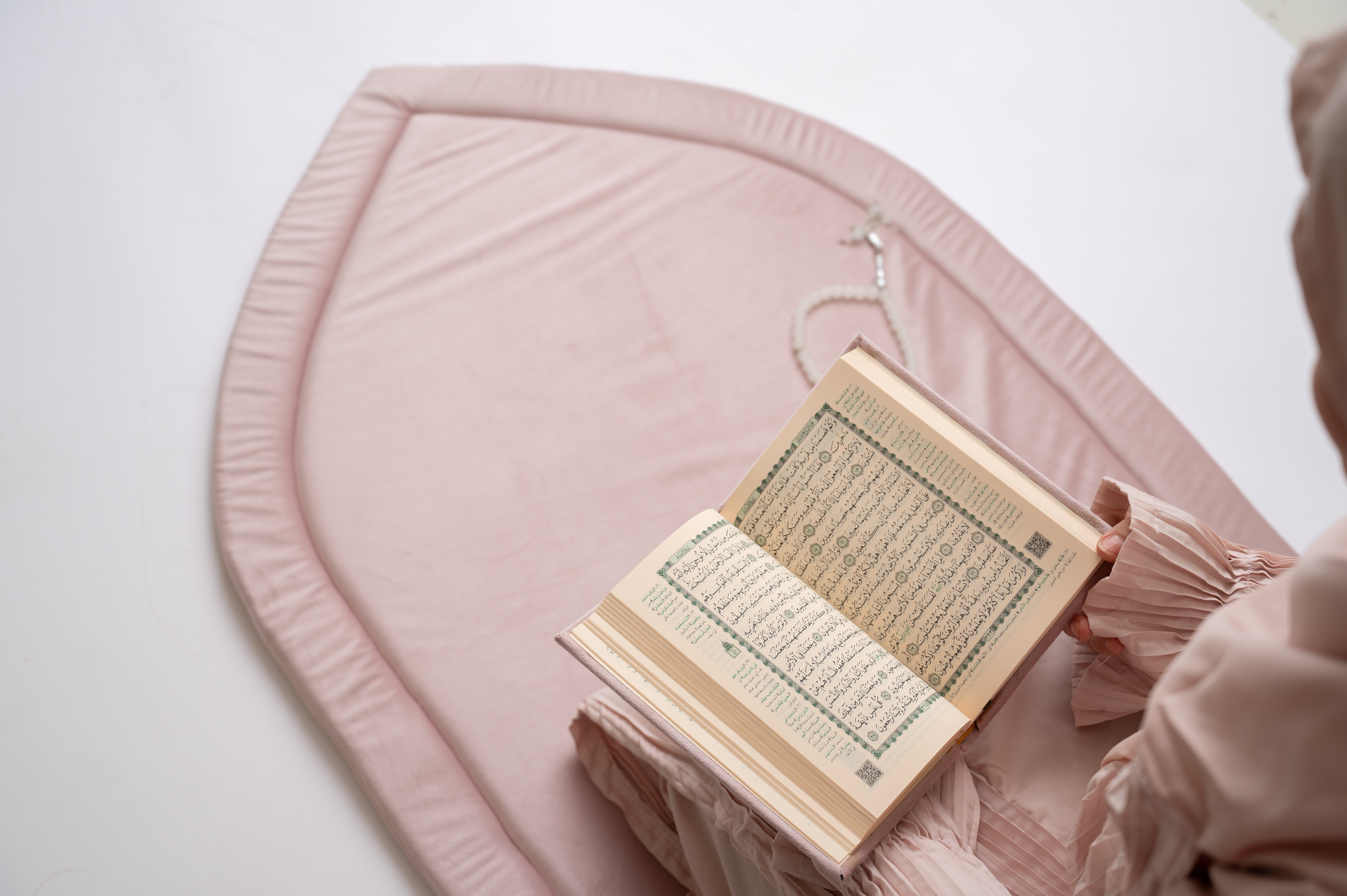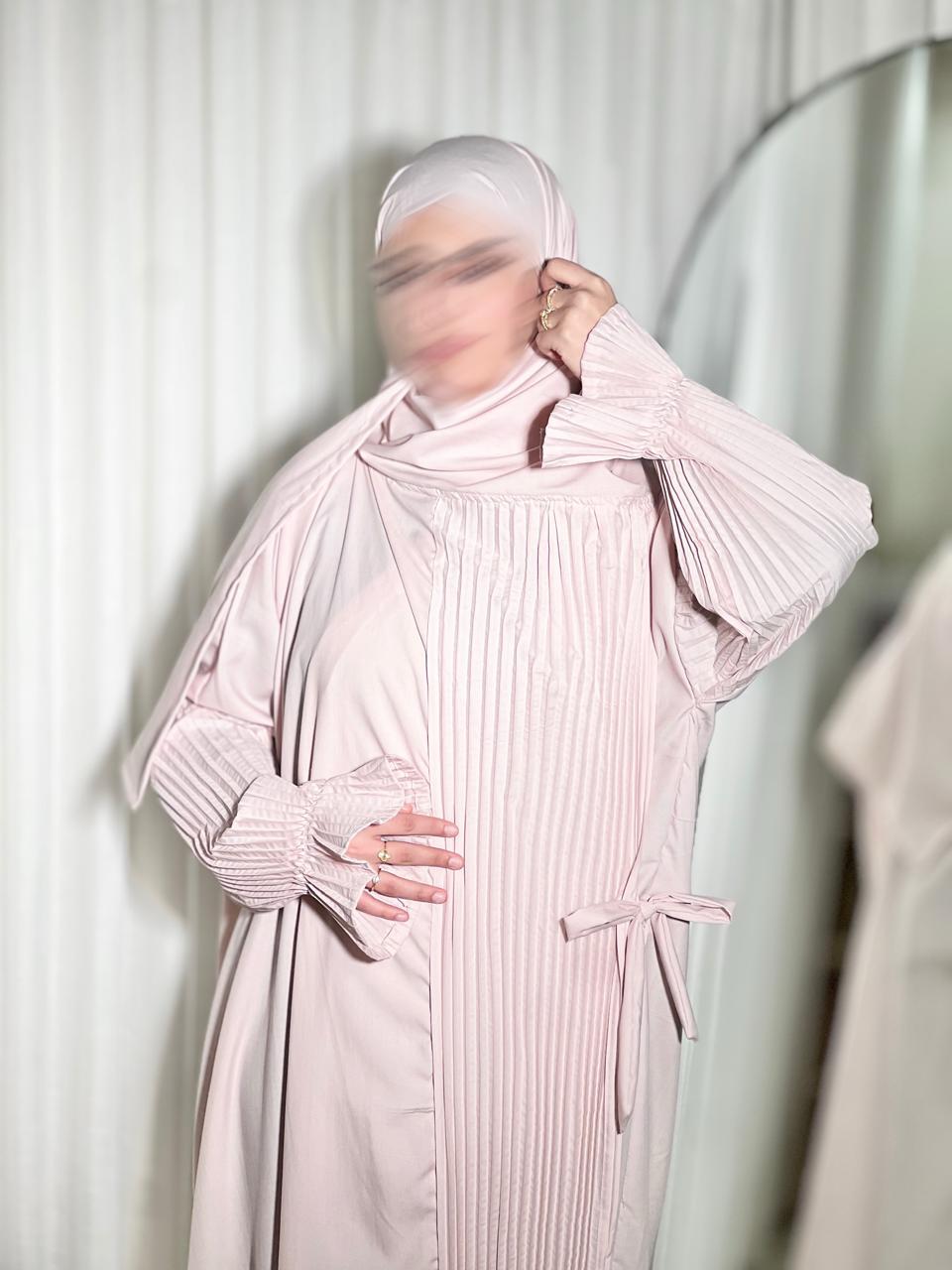 طقم سجادة صلاة و شرشف صلاة - لون وردي