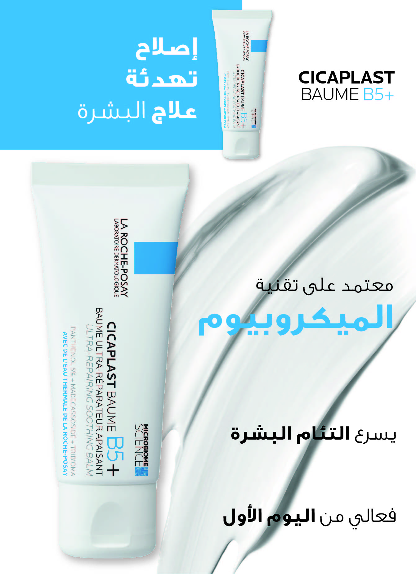 • تركيبة كاملة تحتوي على بانثينول (فيتامين ب 5) لتهدئة البشرة ، وزبدة الشيا لتغذية حاجز البشرة، والماديكاسوسيد لتسريع عملية الإصلاح
