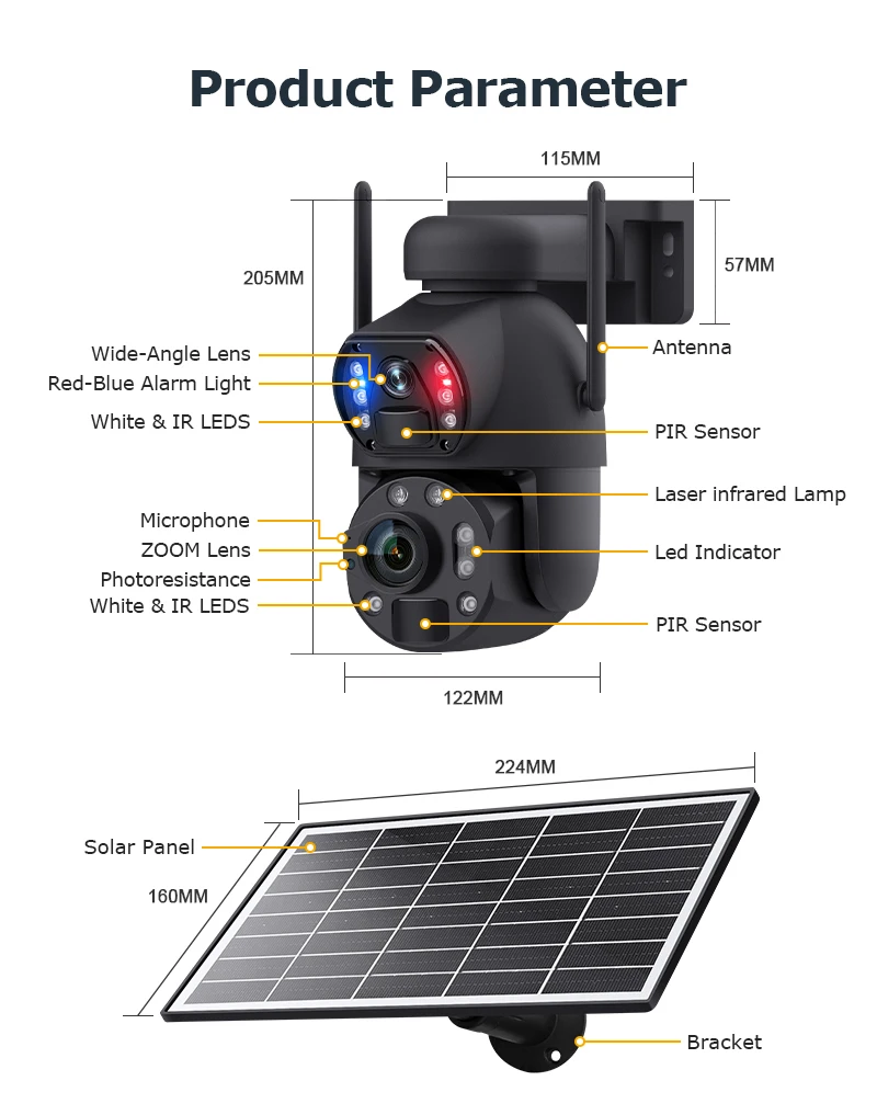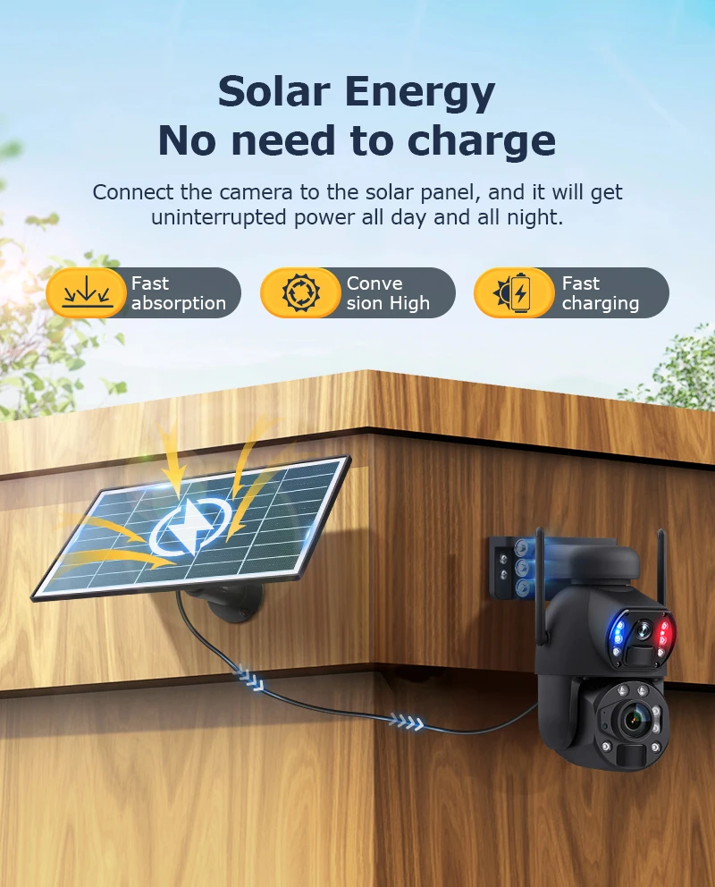 كاميرا طاقة شمسية 4G شريحة بيانات بدقة 4K وزووم 36X مراقبة خارجية ذكية بعدستين كاميرتين حساس كاشف بشري و تتبع الانسان وتتبع تلقائي مع بطارية 12000mAh