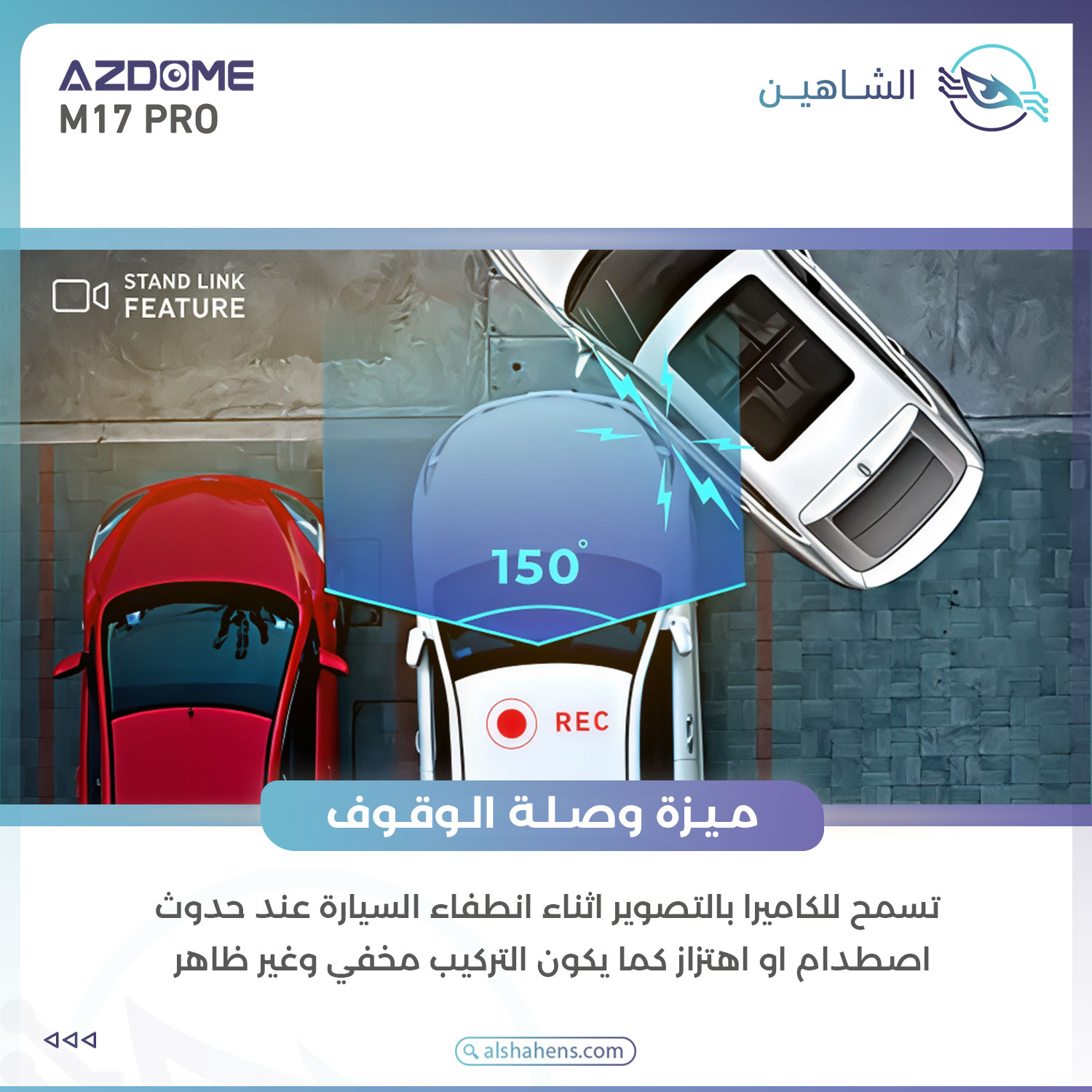 وصلة الوقوف تسمح للكاميرا بالتصوير اثناء انطفاء السيارة عند حدوث اصطدام او اهتزازا بالسيارة.