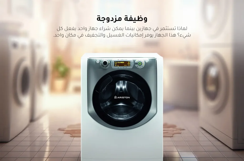 - غسالة اوتوماتيك فتحة امامية اريستون 11كيلو غسيل 7كيلو تنشيف 16 برنامج ابيض ( انفرتر)