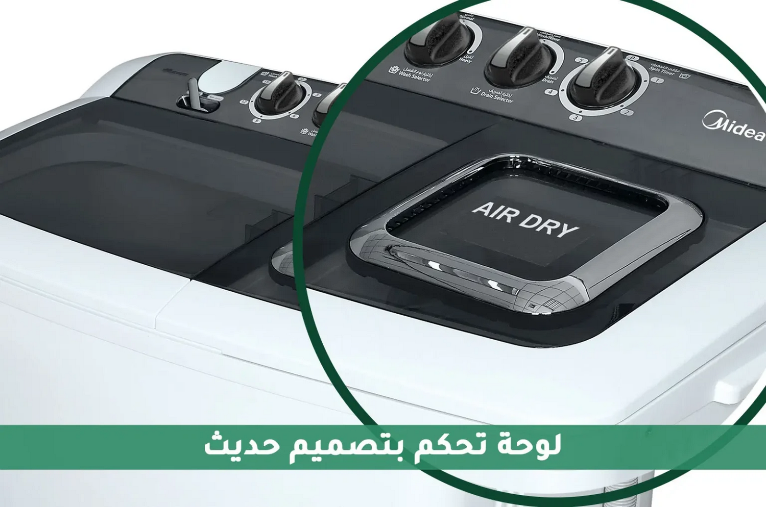 غسالة حوضين ميديا 12 ك ابيض (غطاء اسود)