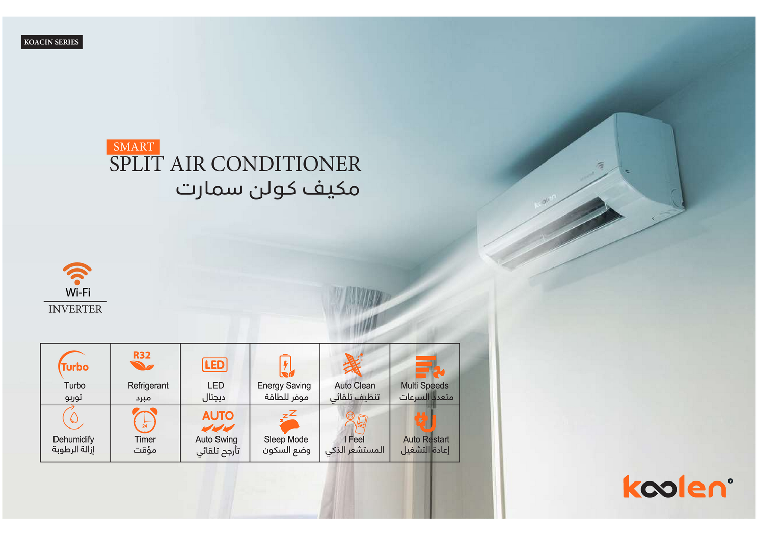 مكيف اسبليت كولين سعة التبريد 24.000 وحدة (انفرتر - واي فاي)