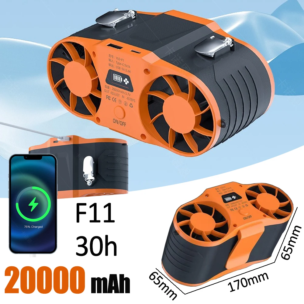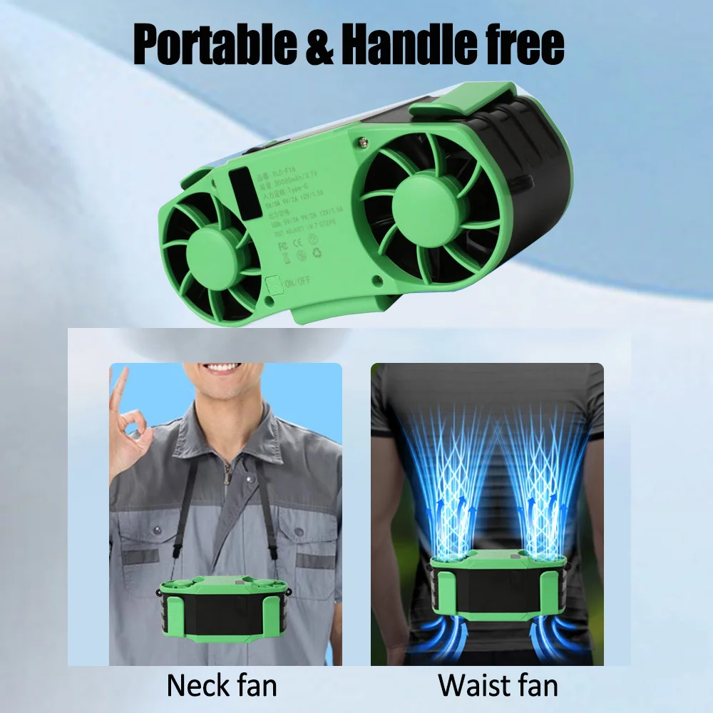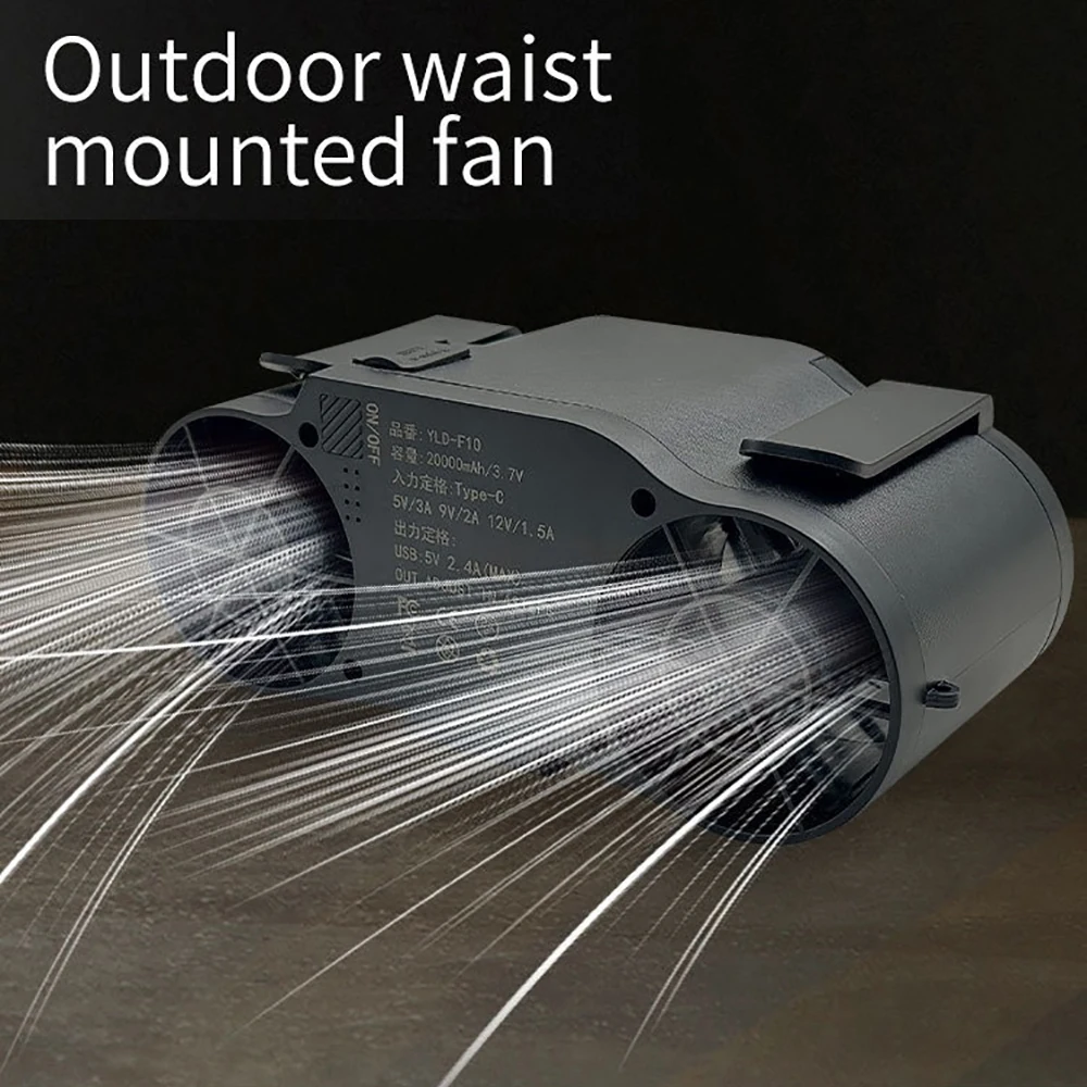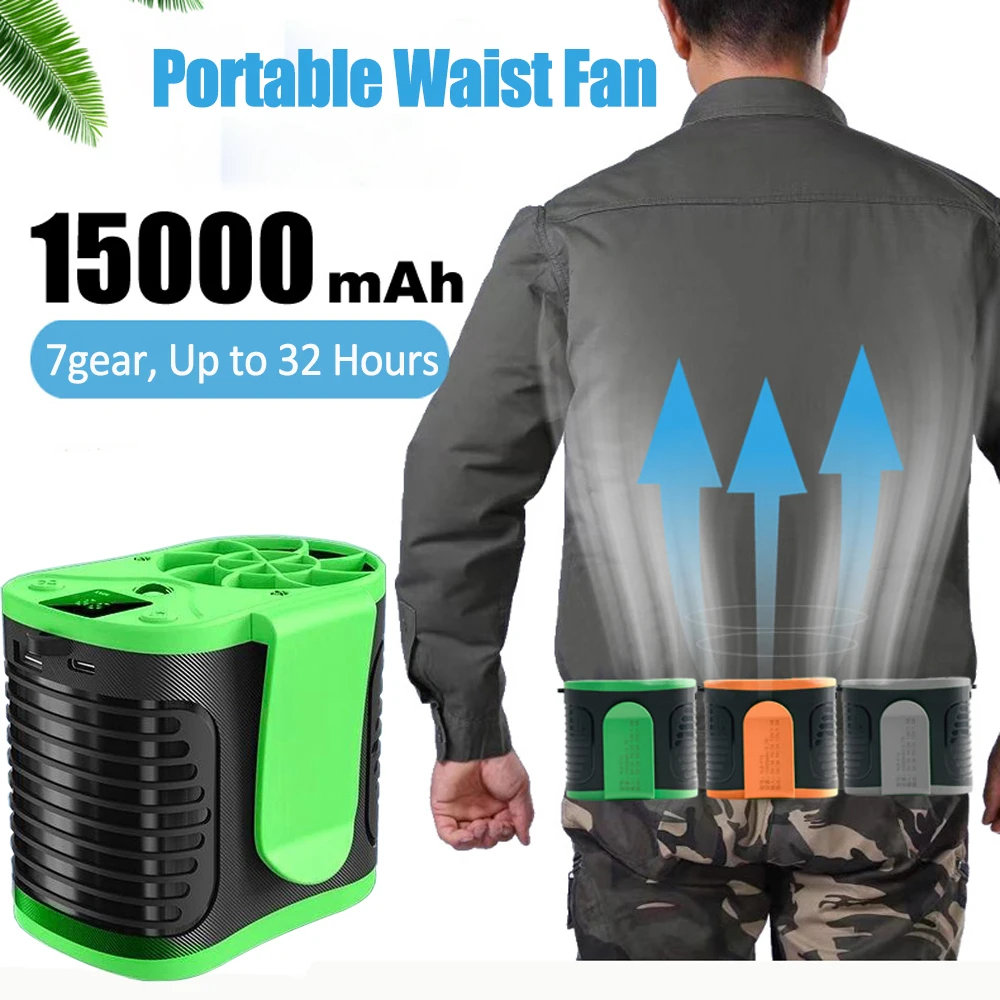 مروحة خصر محمولة بقدرة 30000 مللي أمبير في الساعة، تدفق هواء قوي 7 سرعات 11000 دورة في الدقيقة، مشبك قابل لإعادة الشحن على المروحة لمزارع العمل في الهواء الطلق والصيد أثناء السفر - بحد أقصى 32 ساعة من وقت العمل