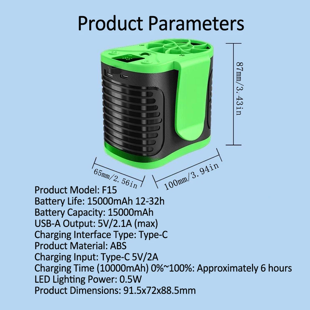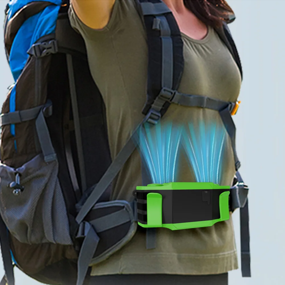 [عمر بطارية طويل]مجهزة ببطارية قابلة لإعادة الشحن بقدرة 30000 مللي أمبير في الساعة، يمكن أن تدوم مروحة حزام الخصر لمدة 8-32 ساعة بشحنة واحدة (اعتمادًا على سرعة الرياح المحددة)، مما يبقيك منتعشًا من الفجر حتى الغسق.مدخل مدمج من النوع C 5V-3A ومخرج USB 5V-3A، يمكنك الشحن باستخدام بنك طاقة محمول أو كمبيوتر أو أي جهاز مزود بمنفذ USB