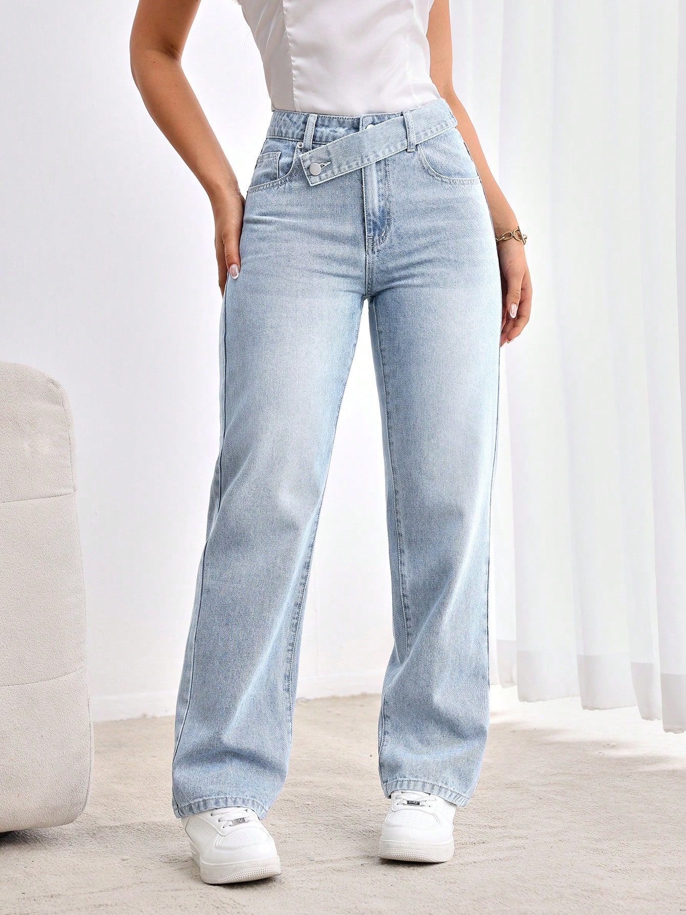 8. Slaydiva جينز نسائي كاجوال فضفاض بخصر قابل للسحب