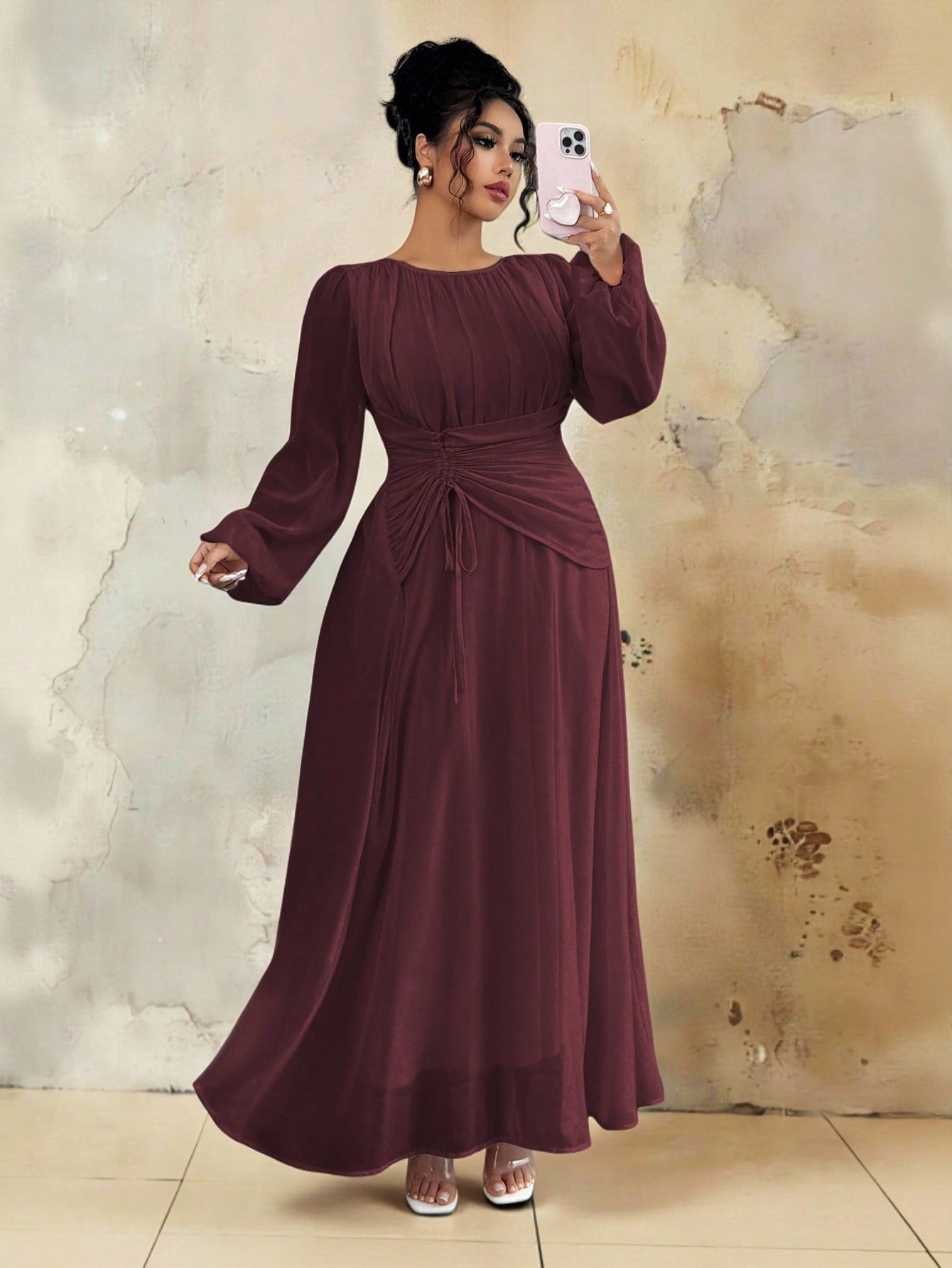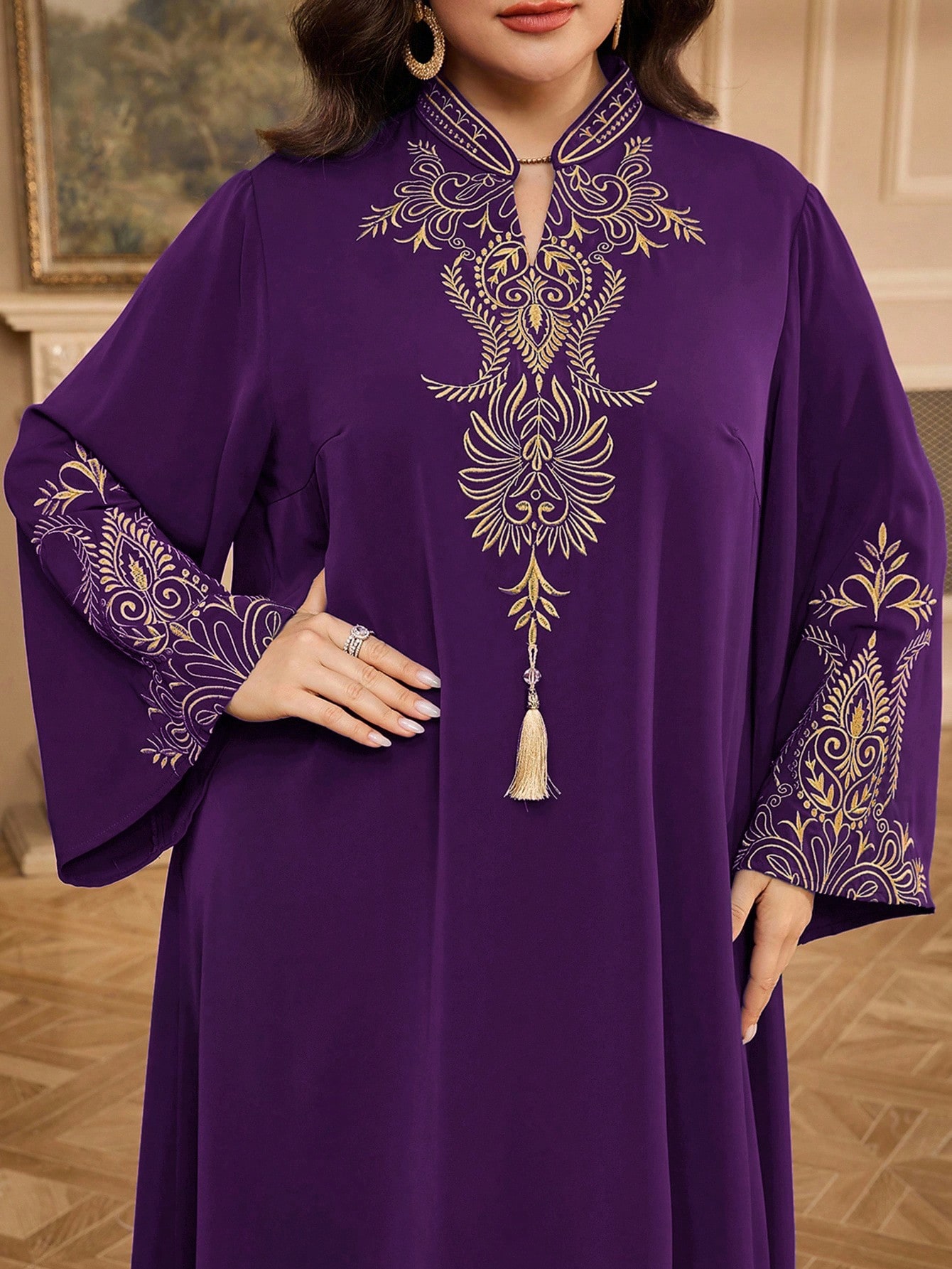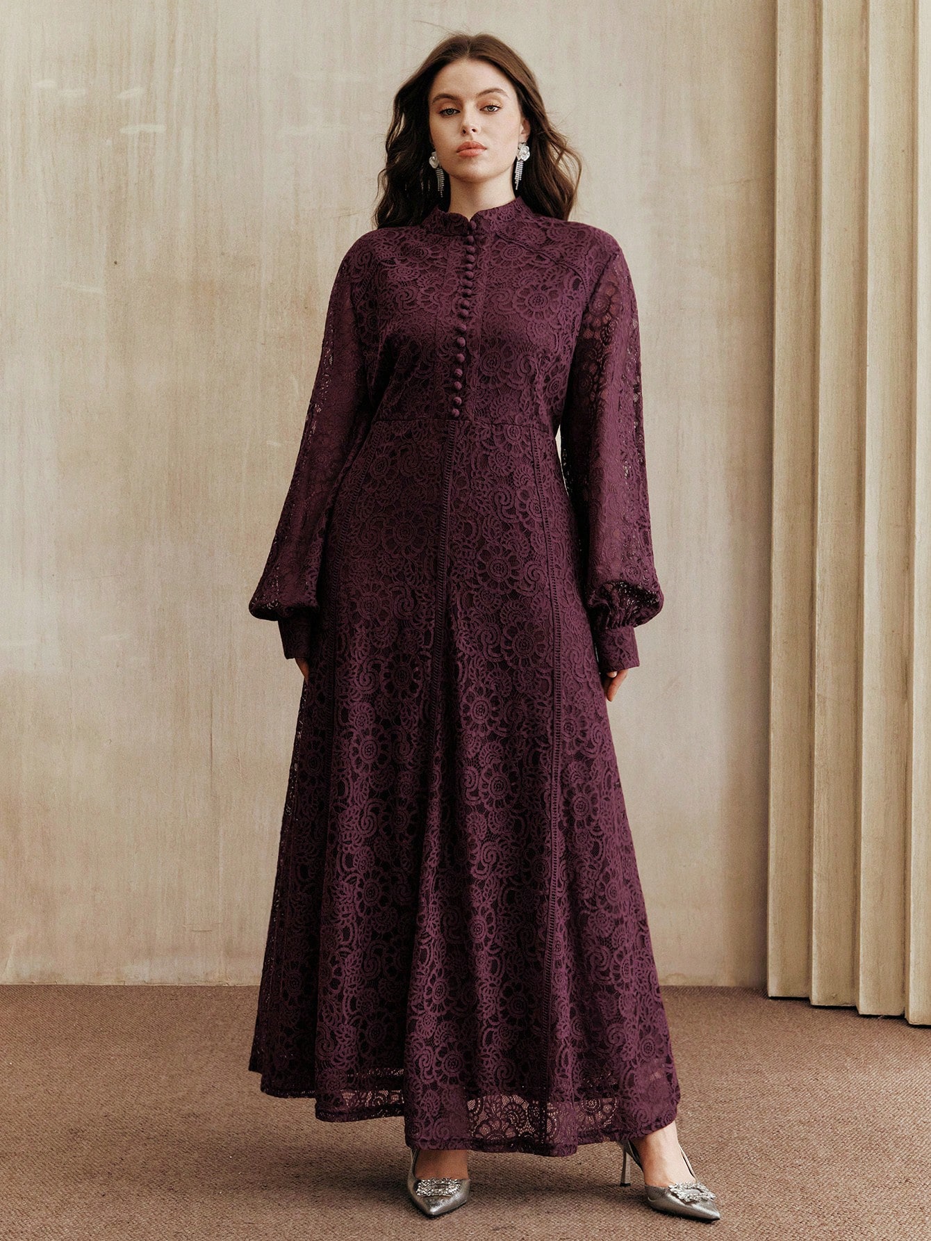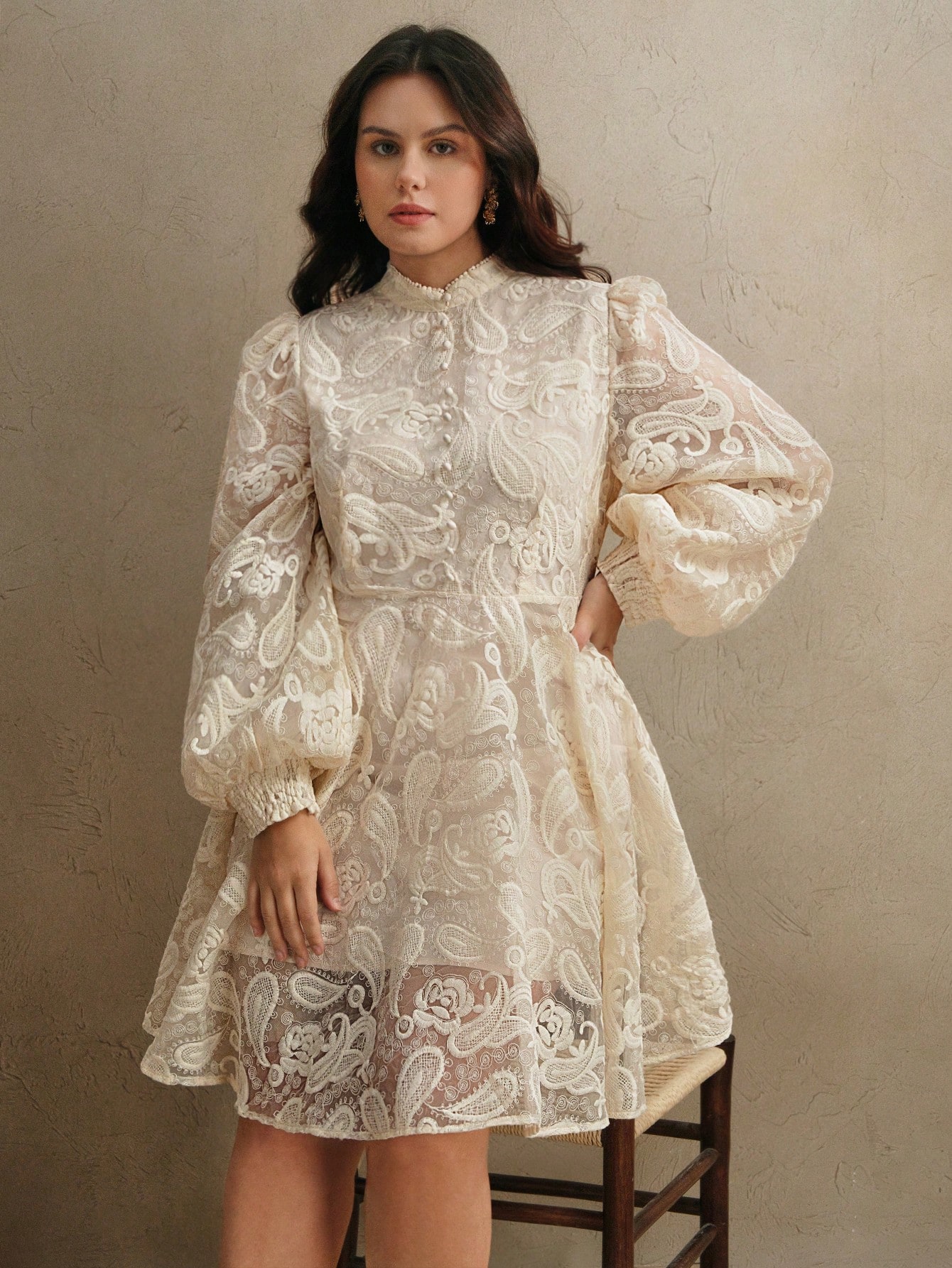 4. ZEYLAH فستان طويل الأكمام مطرز بشبكة أنيقة