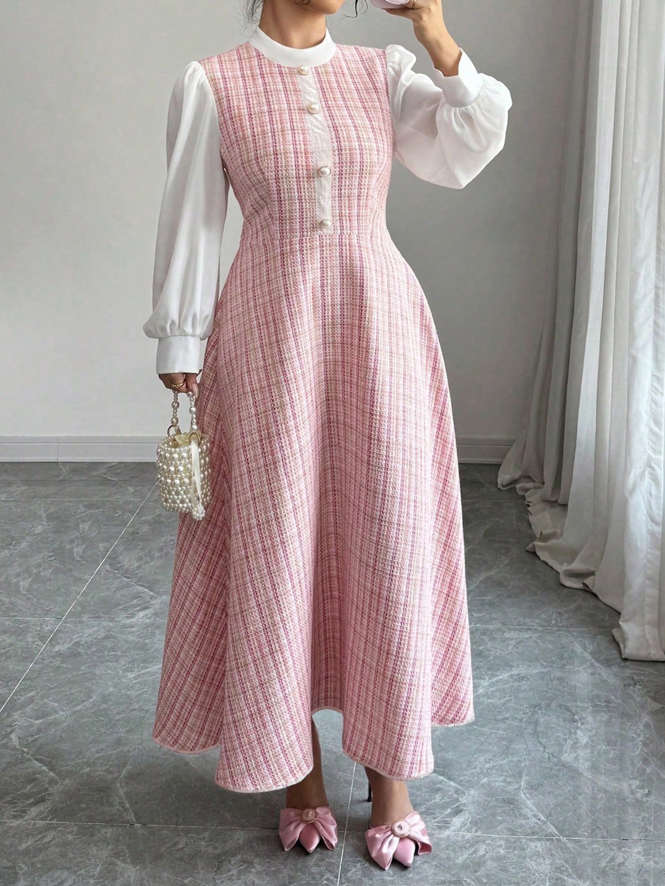 7. فستان أنيق بلون سادة وياقة منقلبة للربيع