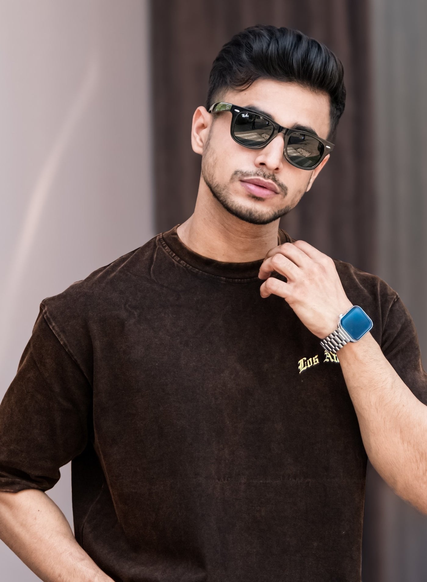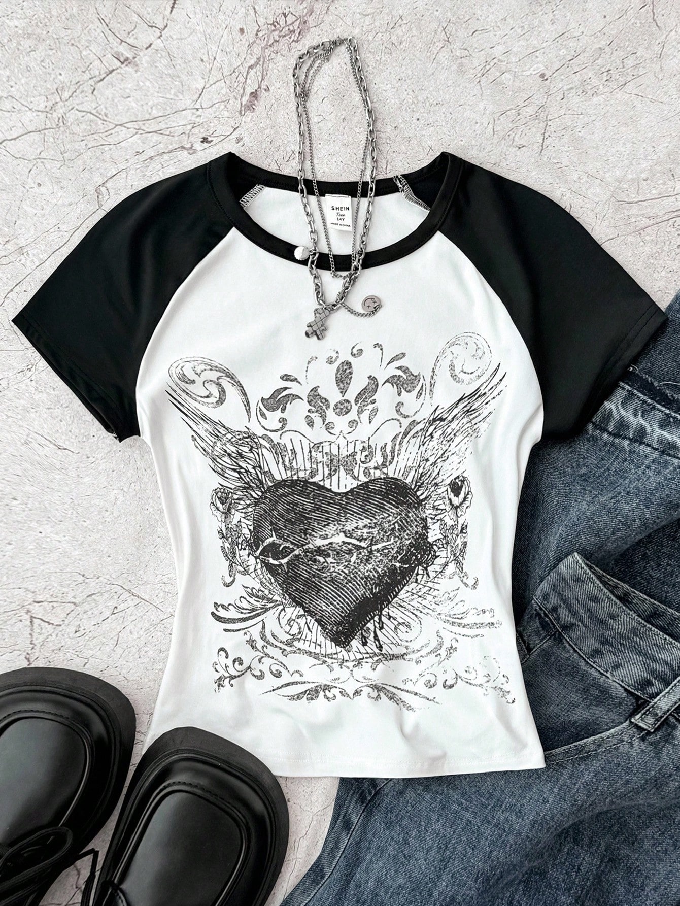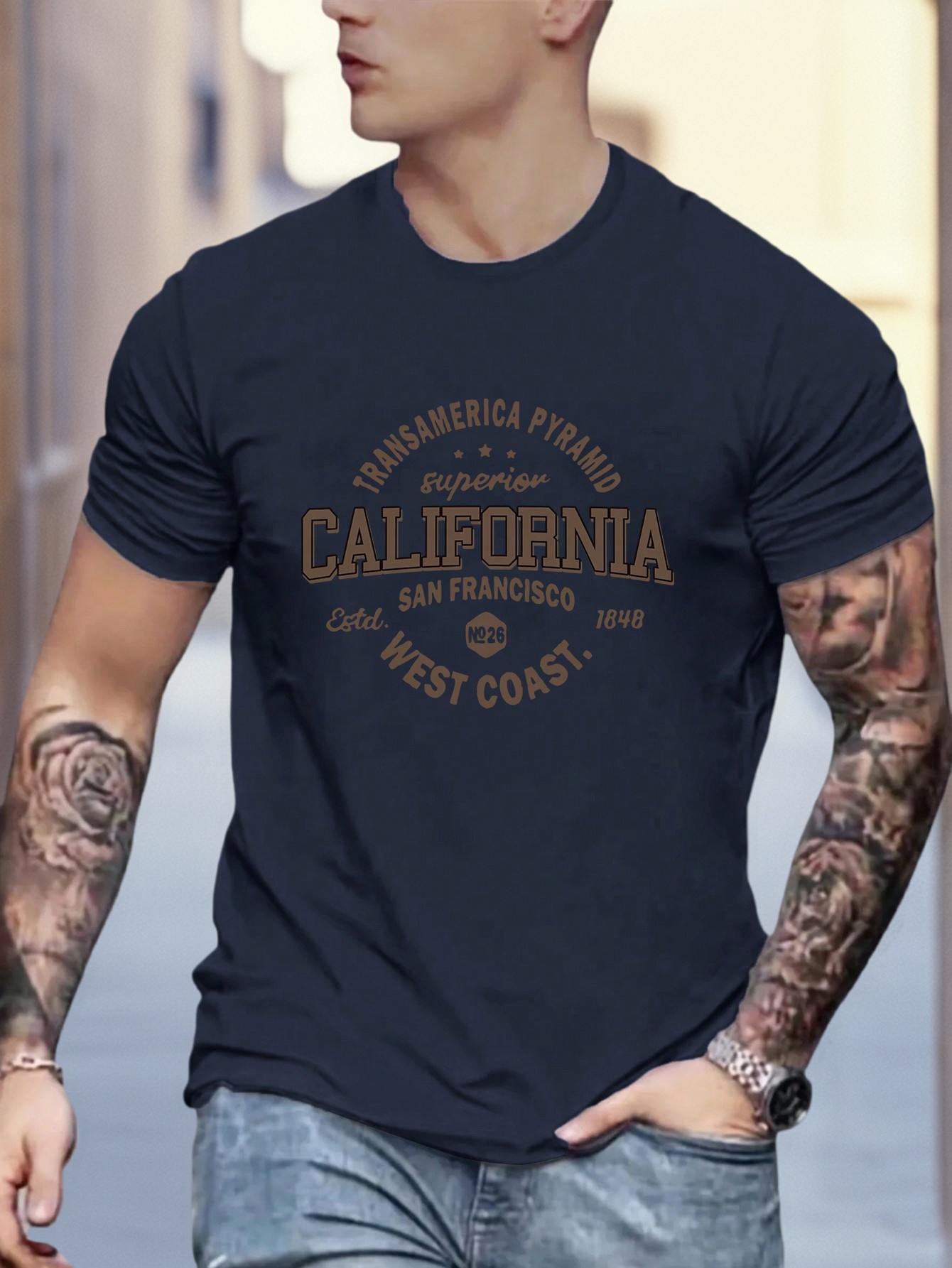 1. تي شيرت كاجوال فضفاض بطبعة شعار للرجال بياقة دائري...