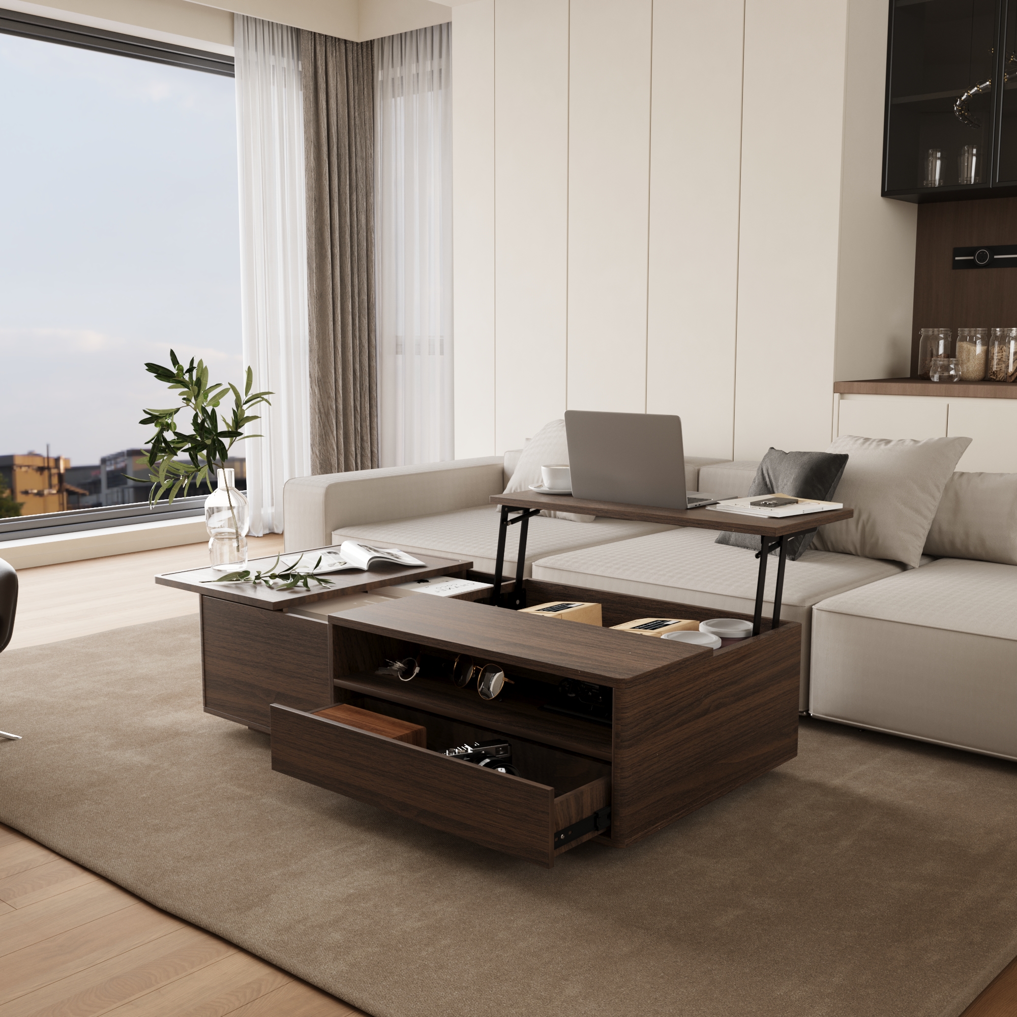 طقم طاولات وملحقاتها لغرفة معيشة 10 قطع - بني وأبيض