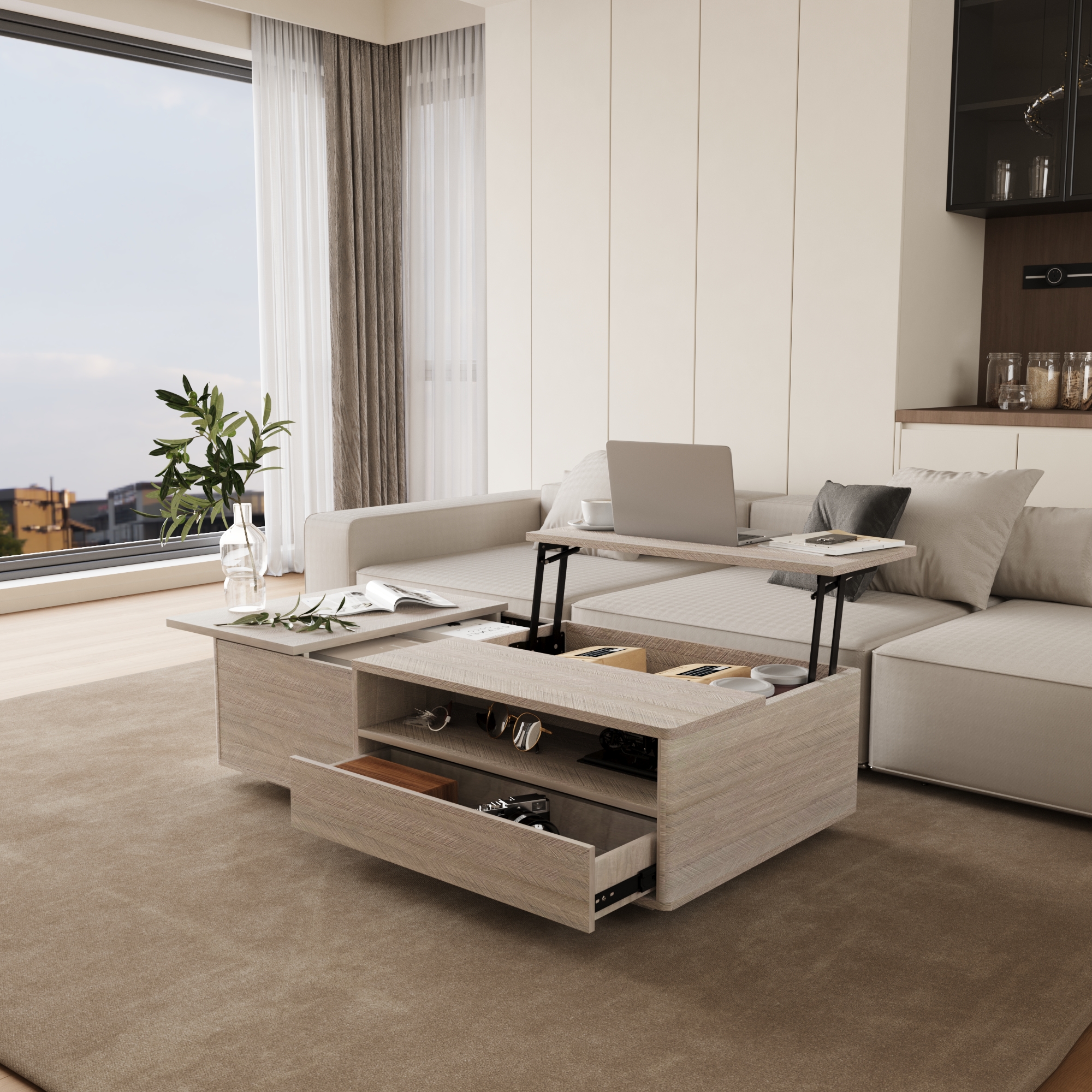 طقم طاولات وملحقاتها لغرفة معيشة 10 قطع - رمادي وأبيض