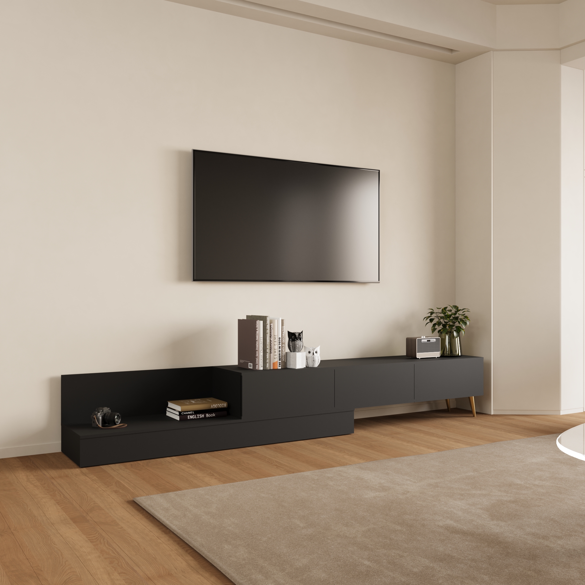 طاولة تلفزيون قابلة للتمدد - لون أسود