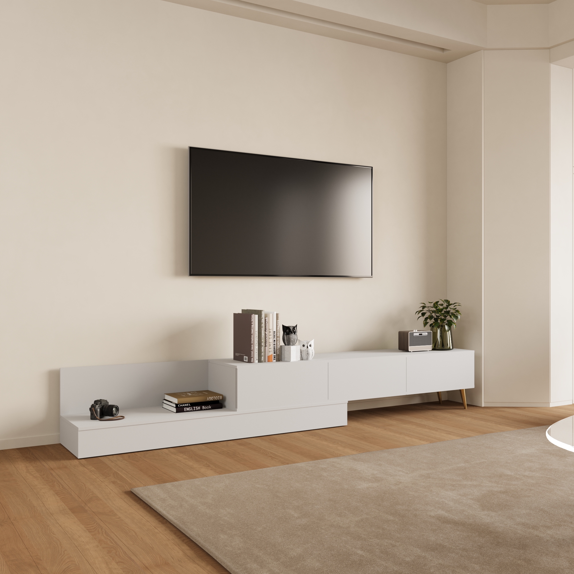 طاولة تلفزيون قابلة للتمدد - لون أبيض