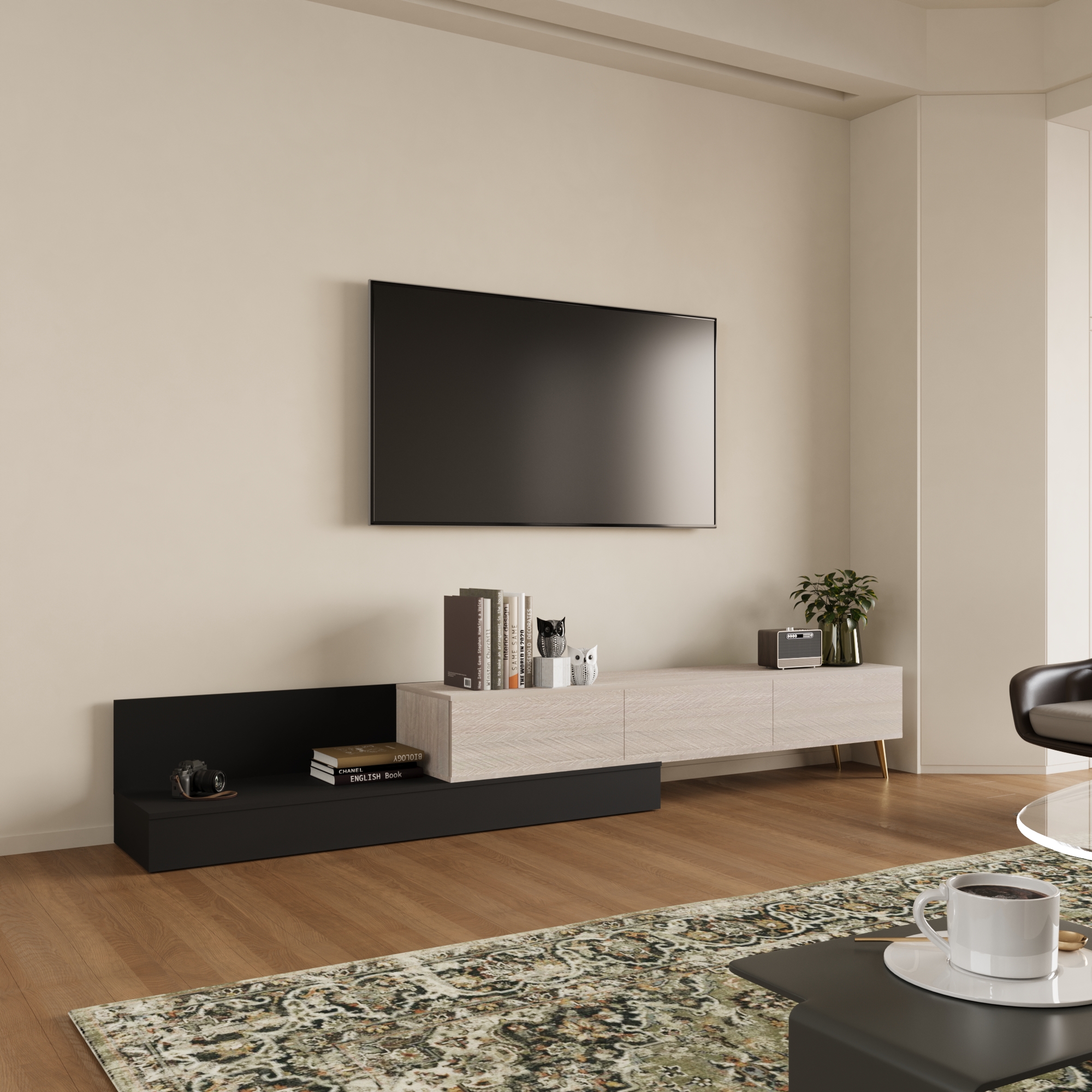طاولة تلفزيون قابلة للتمدد - لون خشبي وأسود