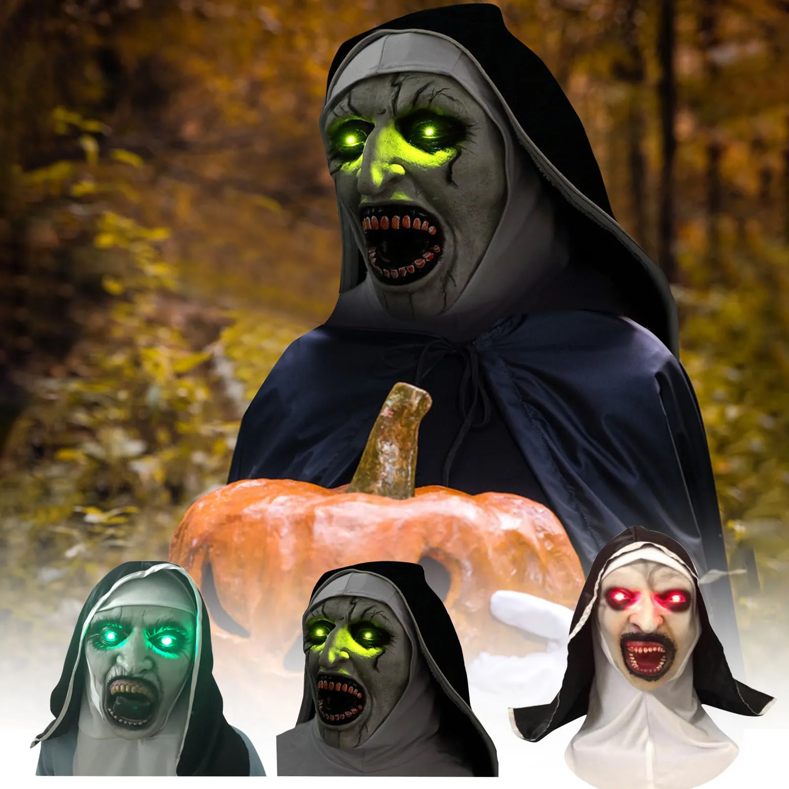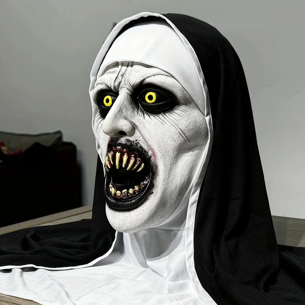 قناع اللاتكس الراهبة المخيف أقنعة مضيئة مع غطاء الرأس زي تنكري لعيد الهالوين قناع الوجه