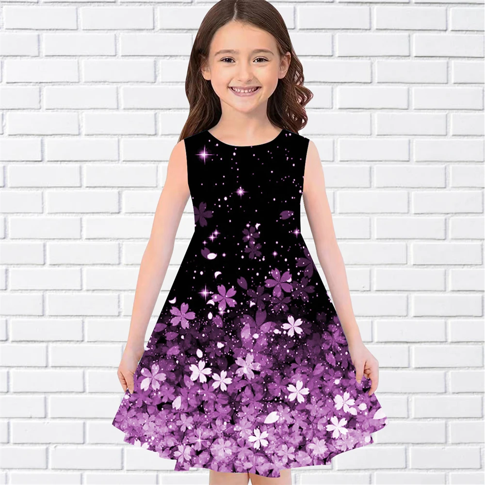 فساتين ملونة بطباعة زهور للفتيات فستان أميرات بلا أكمام ملابس ثلاثية الأبعاد