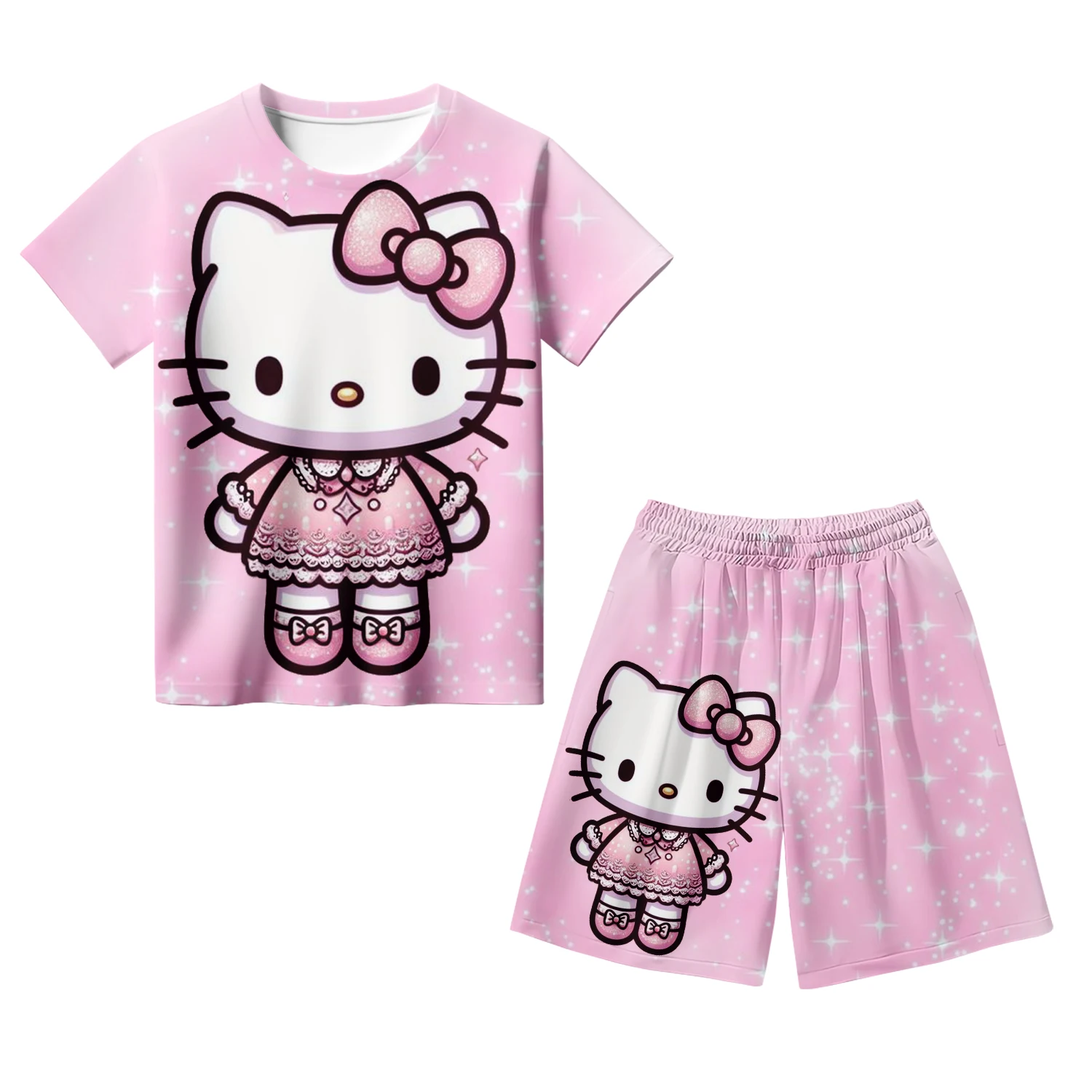 طقم تيشيرت وسراويل قصيرة الأكمام للأطفال طباعة ثلاثي الأبعاد صيفي