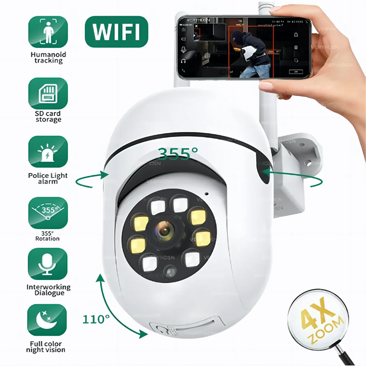 كاميرات مراقبة خارجية IP ، كاميرا فيديو لاسلكية ، مراقبة أمنية ، رؤية ليلية صوتية ، تلفزيون CCTV لاسلكي ، تكبير رقمي 4X ، واي فاي ، IP ، 3MP