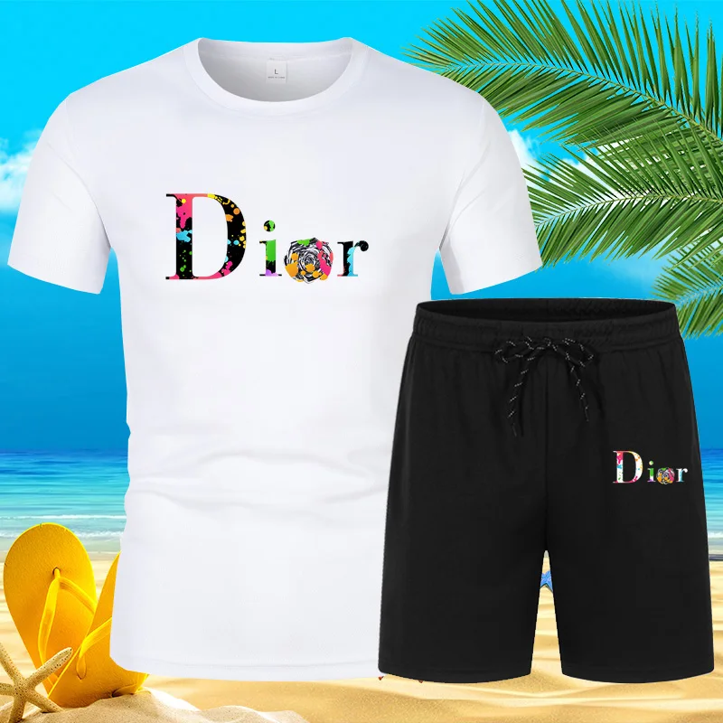 بدلة تيشيرت بأكمام قصيرة للرجال ، ملابس رياضية للركض ، طقم شاطئ ، مطبوع ، موضة غير رسمية ، صيف ، جديد ، ساخن ، أو