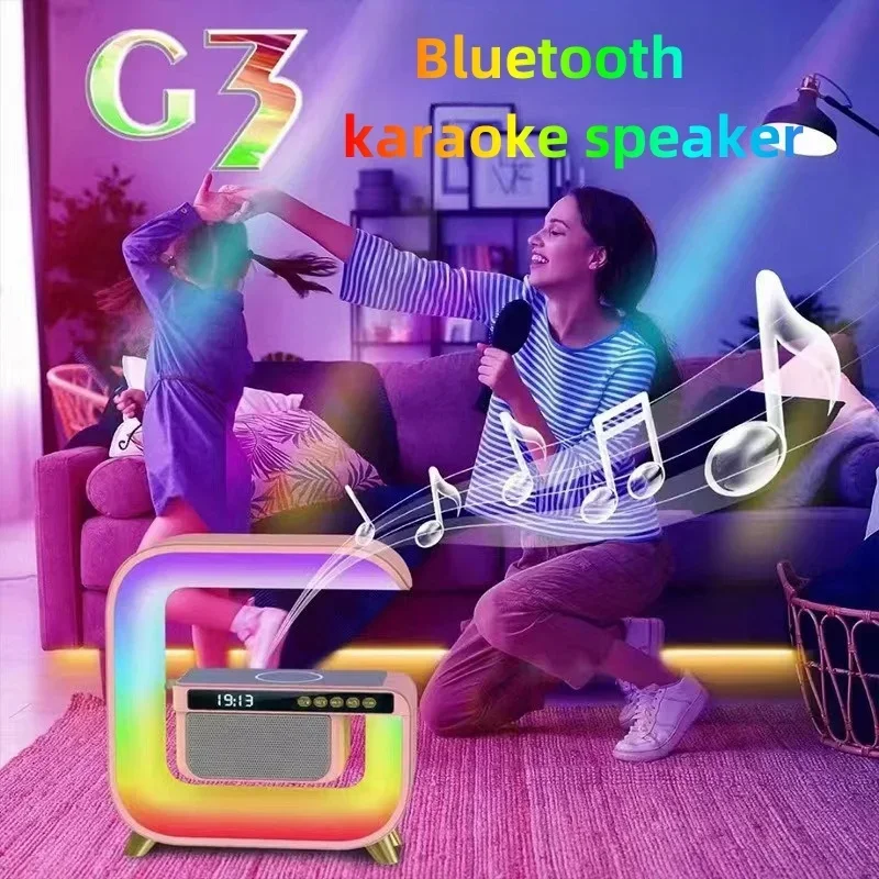 شحن لاسلكي كبير G متعدد الوظائف مكبر صوت بلوتوث ، مصباح ، ساعة منبه توقيت ، 13 نوع من الضوء المبهر ، 15 واط