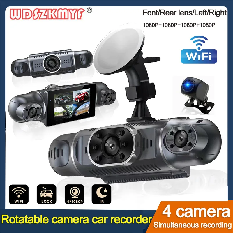 داش كام 4 كاميرات كاميرا داش للسيارة مسجل تلقائي ، واي فاي ، رؤية ليلية ، شاشة وقوف 24 ساعة