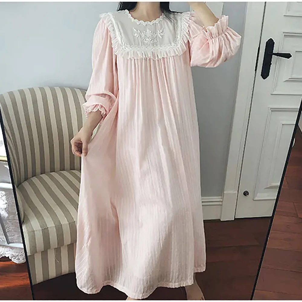 قمصان نوم فيكتورية نسائية مطرزة ، فستان لوليتا ، قمصان نوم أميرة وردية ، فستان نوم كلاسيكي على طراز القصر ، ملابس نوم للاسترخاء