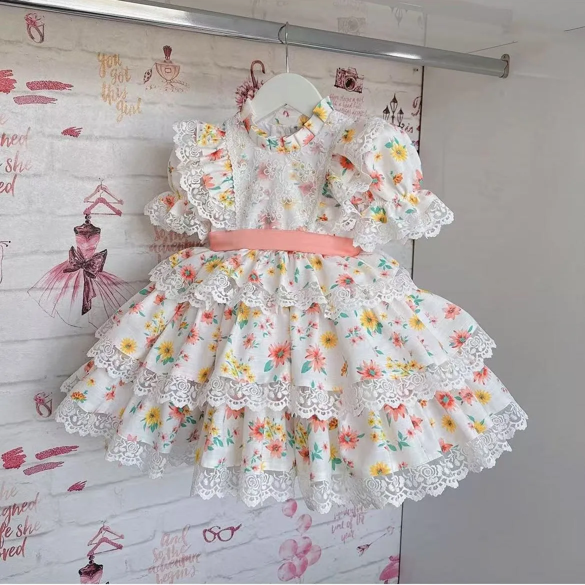 فستان للفتيات الصغيرات من عمر 0 إلى 12 سنة باللون البيج التركي العتيق لحفلات أعياد الميلاد وعيد الميلاد