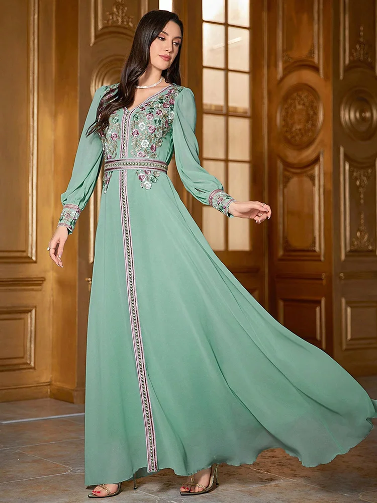 فستان سهرة إسلامي ساحر برقبة دائرية أنيق مطرز قفطان مستقيم رائجة البيع فستان حفلات نسائي رائع ملابس كوكتيل عربية