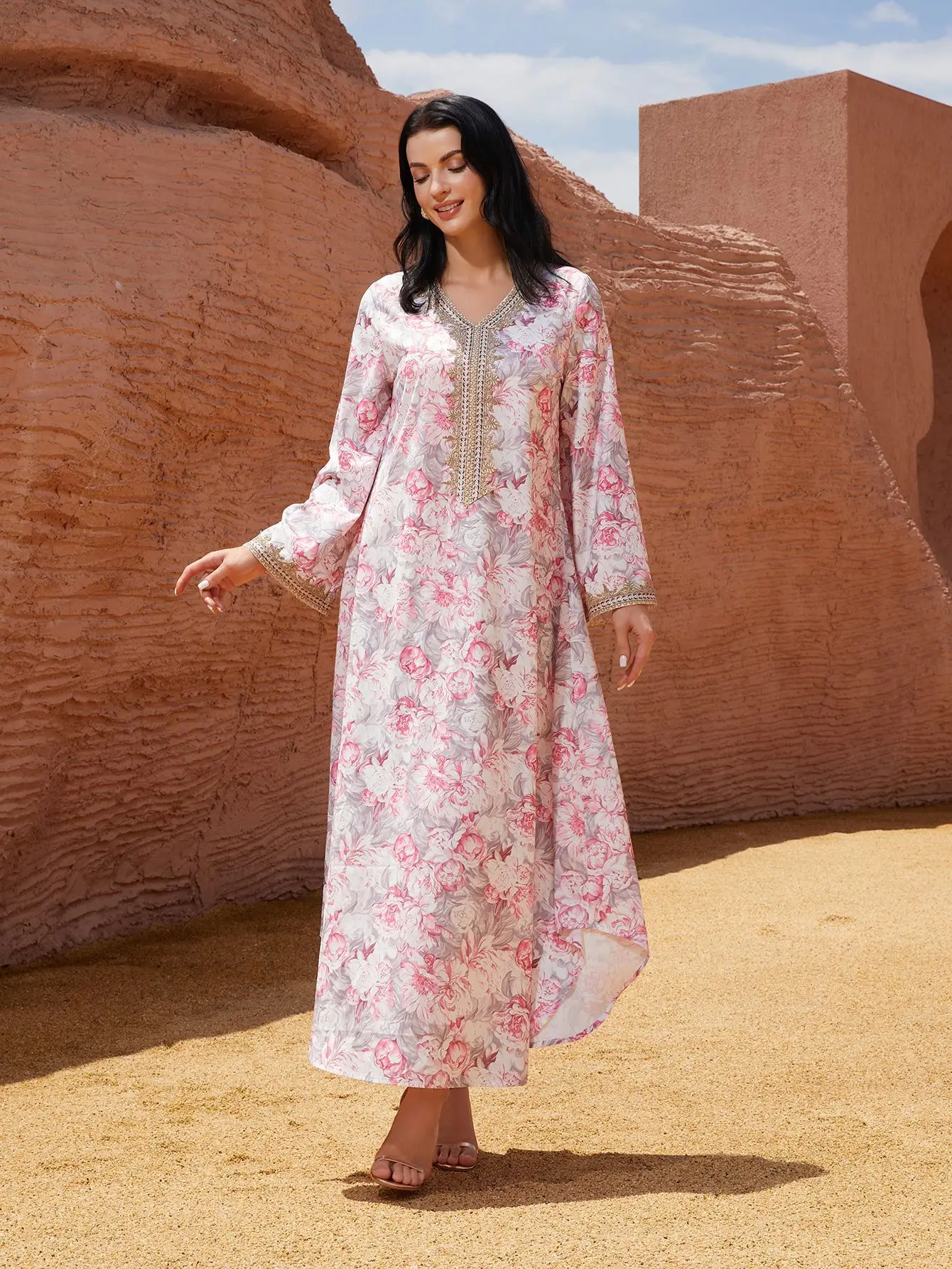 جلابية نسائية أنيقة بتصميم أوراق الخريف مناسبة للأعياد والجمعات