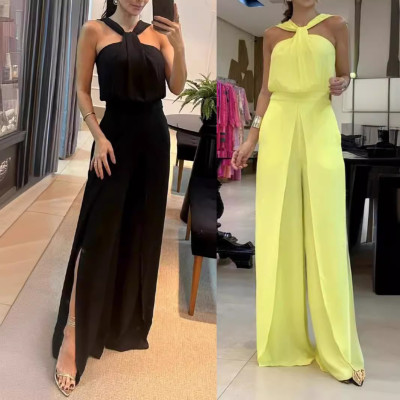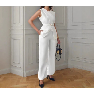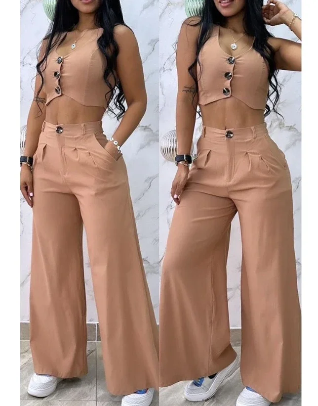 طقم نسائي أنيق من قطعتين بلوزة بقصة مميزة وبنطلون واسع