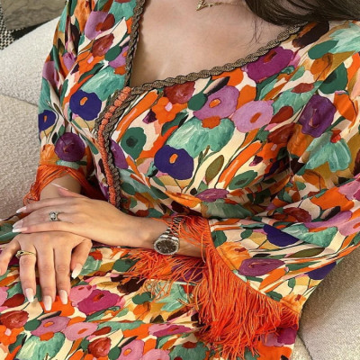 جلابية ميدي موضة افريقيه فضفاضة من الحرير بطبعات عصرية