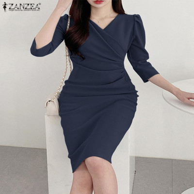 فستان متوسط الطول للنساء من البولي يوريثان فساتين حفلات ليلية مثيرة Y2k ملابس الشارع الشهير بياقة على شكل V وأكمام طويلة ملفوفة على الورك أنيقة للعمل في الخريف