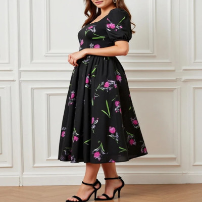 فستان نسائي ميدي ناعم واسع ومريح يوحي بالأناقة والرقي