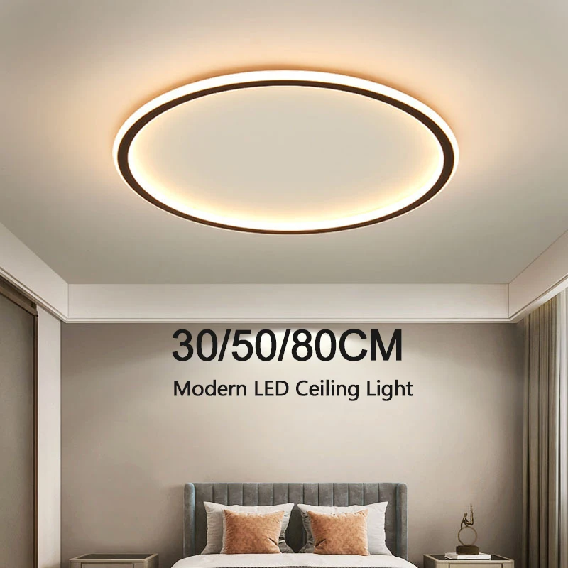 إضاءة سقف LED حديثة، بتصميم دائري بأقطار 30/50/80 سم، مناسبة لغرف النوم، دورات المياه، غرف المعيشة، غرف الطعام، المطابخ، والفنادق، مما يوفر إضاءة منزلية مثالية.