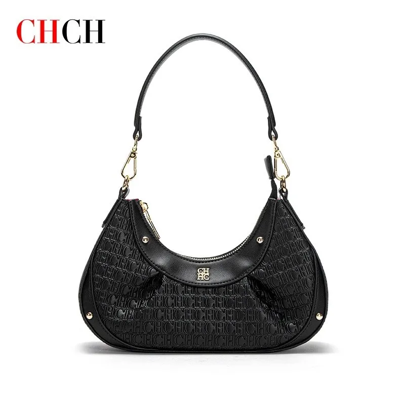 حقيبة يد نسائية على شكل هلال من العلامة التجارية CHCH، مصنوعة من البولي يوريثان المنقوش، وتتميز بحزام كتف قابل للفصل.