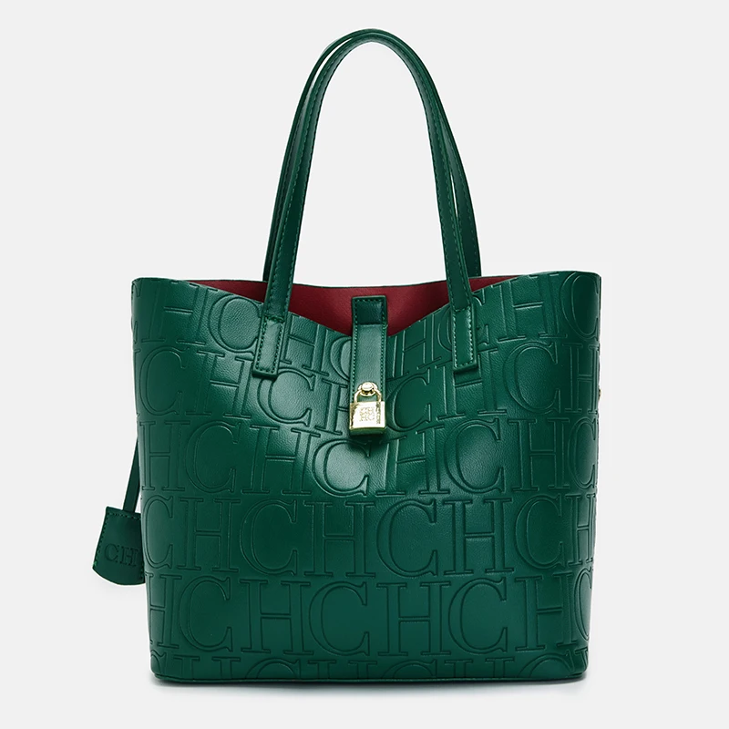 حقيبة كتف كلاسيكية ذات سعة كبيرة من العلامة التجارية CH، تتميز بتصميم عملي مع حزام كتف، مما يجعلها حقيبة كروس عصرية وأنيقة.