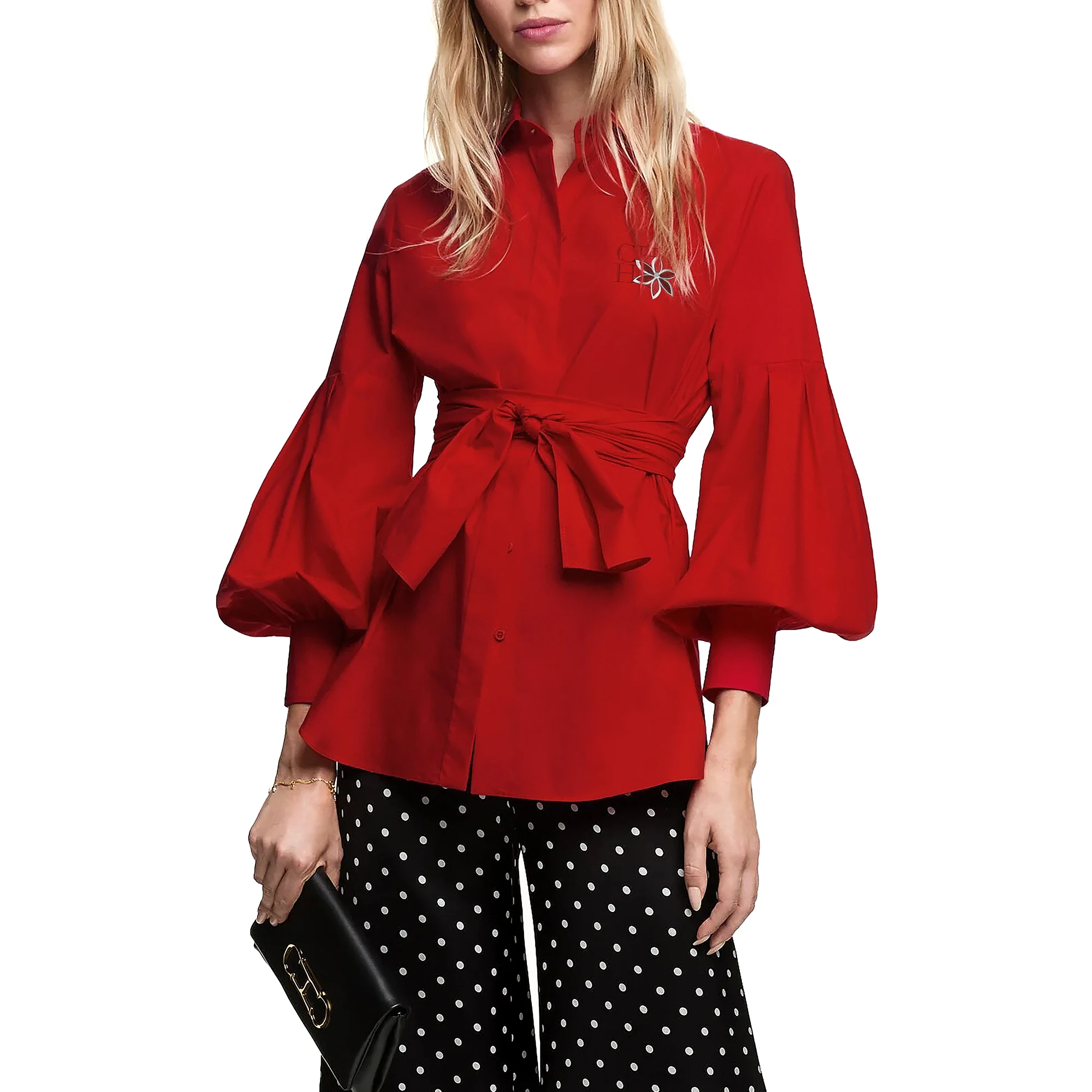 قمصان CHCH النسائية المطرزة: بلوزة أنيقة بأكمام فانوس غير رسمية، مثالية لإطلالة مكتبية عصرية ومريحة.